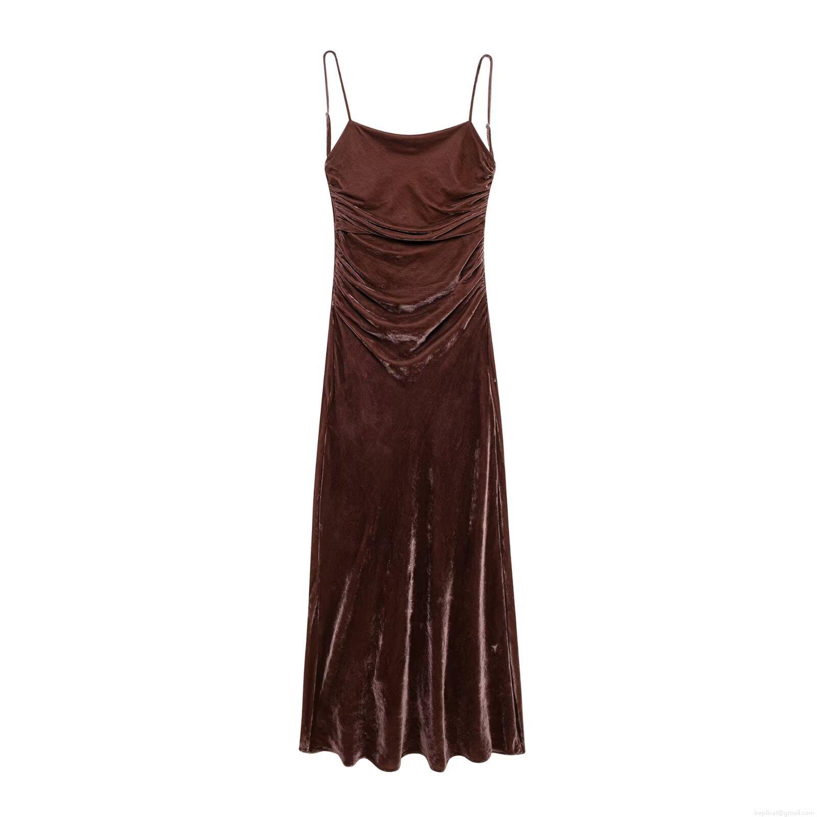 • Women's Sexy Backless Velvet Pleated Camisole Dress Slim Fit Spaghetti Strap Long Maxi Bodycon Dresses For Party Club Evening