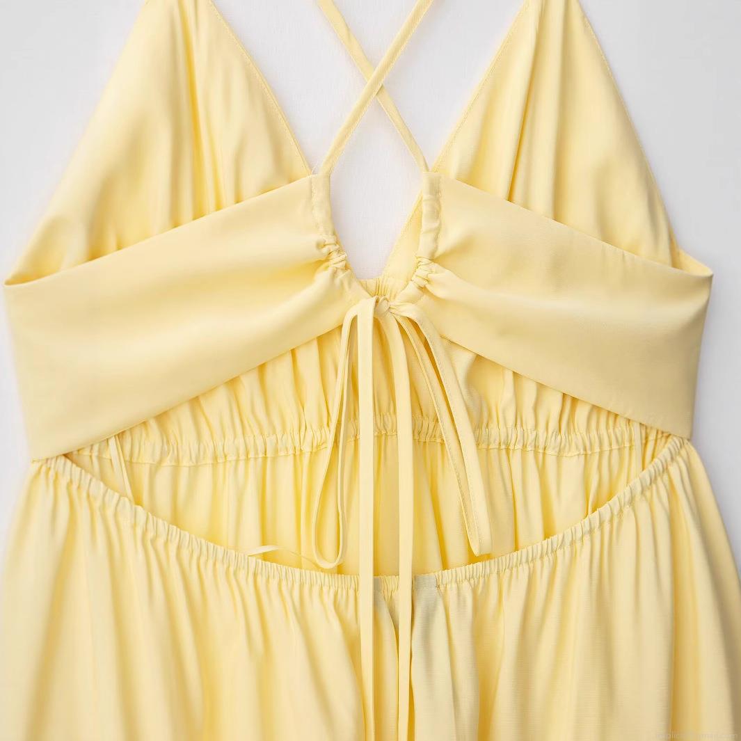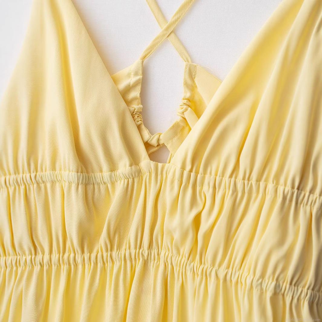 Solid Color, Pleats, V-neck, Backless, Cross Shoulder Straps