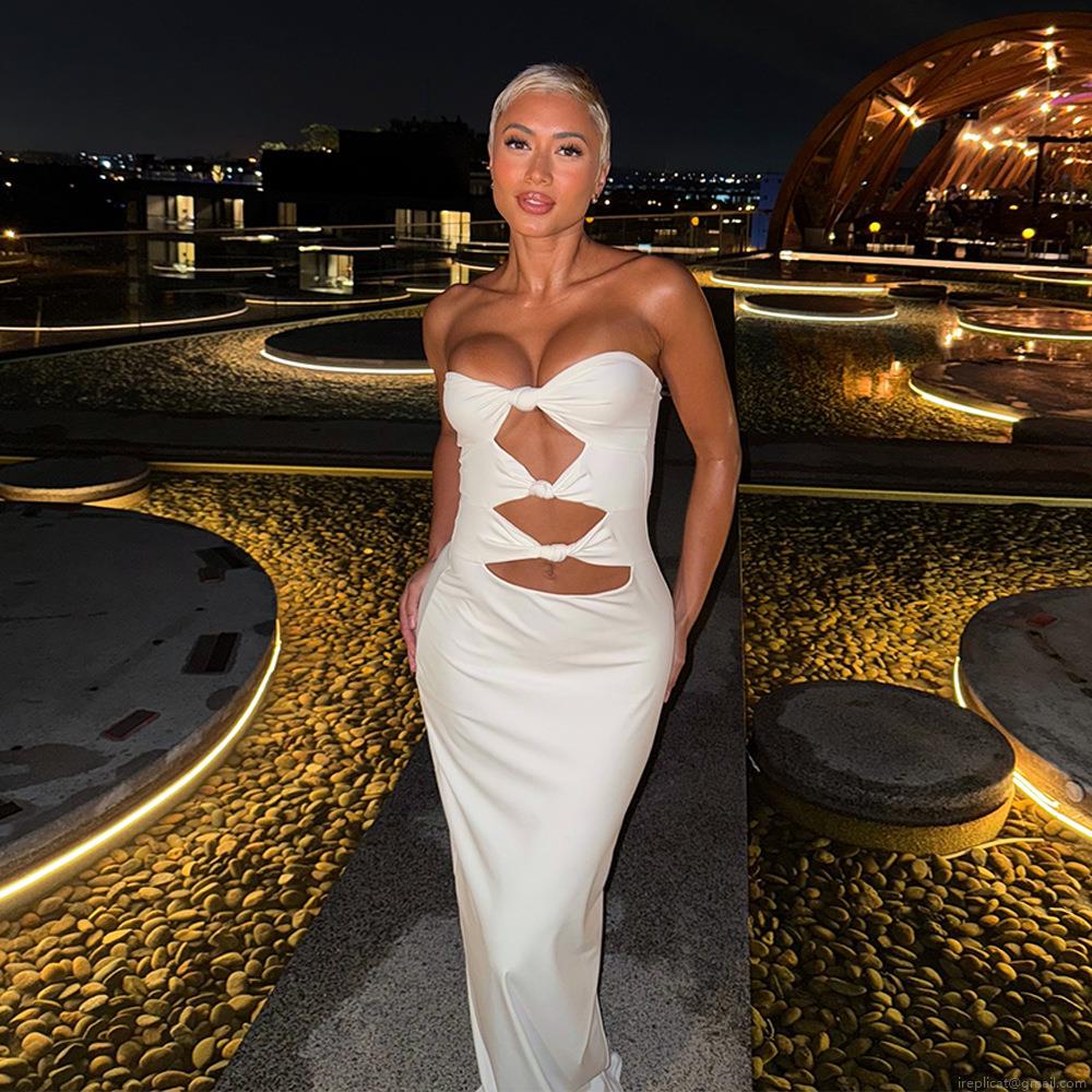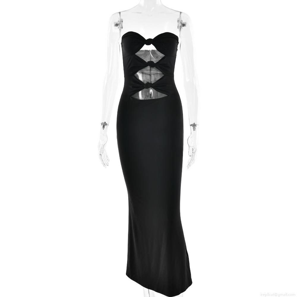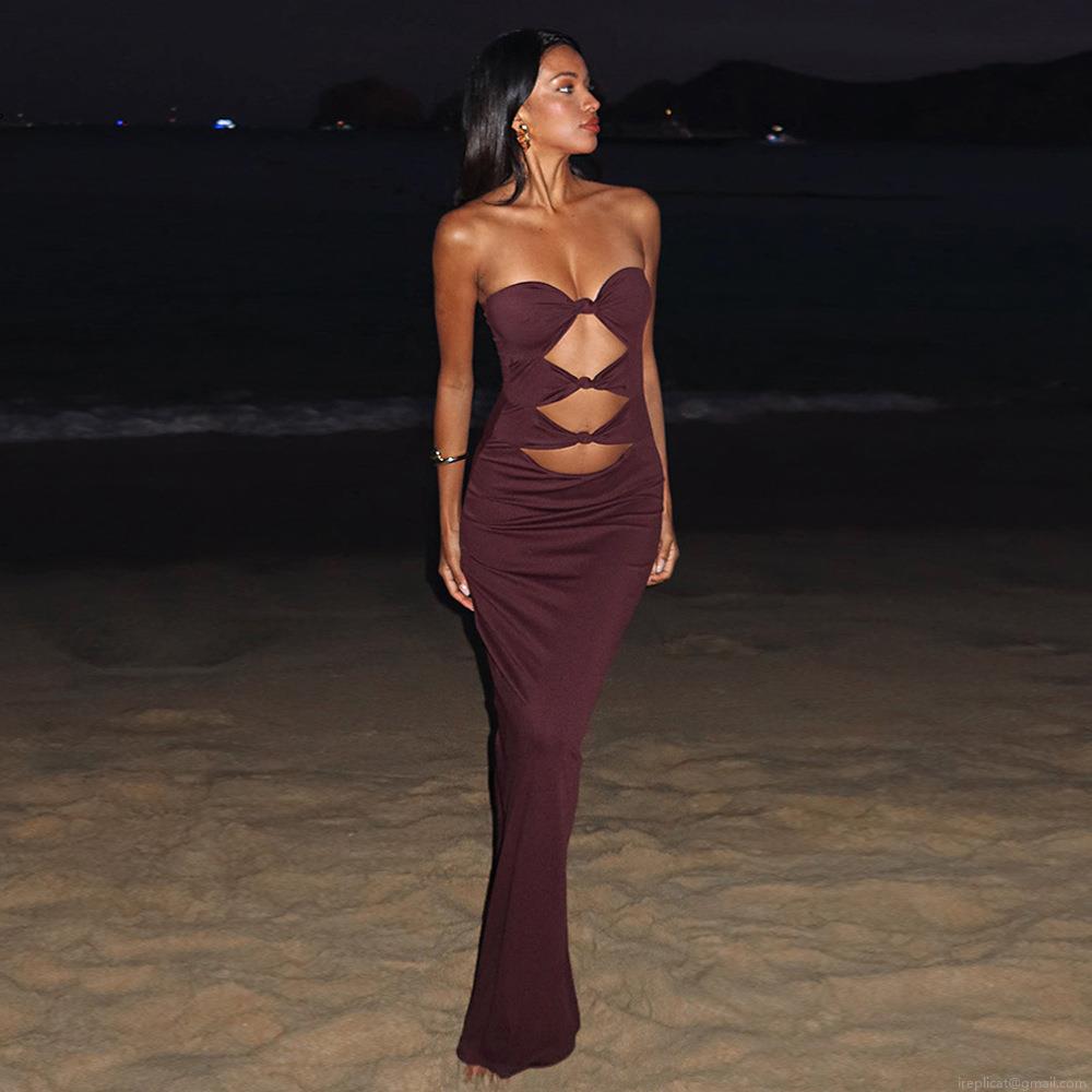 • Women's Sexy Bandeau Maxi Dress Knotted Cutout Bodycon Sleeveless Floor Length Polyester Milk Silk Dress For Summer Beach Party Night Out Ladies