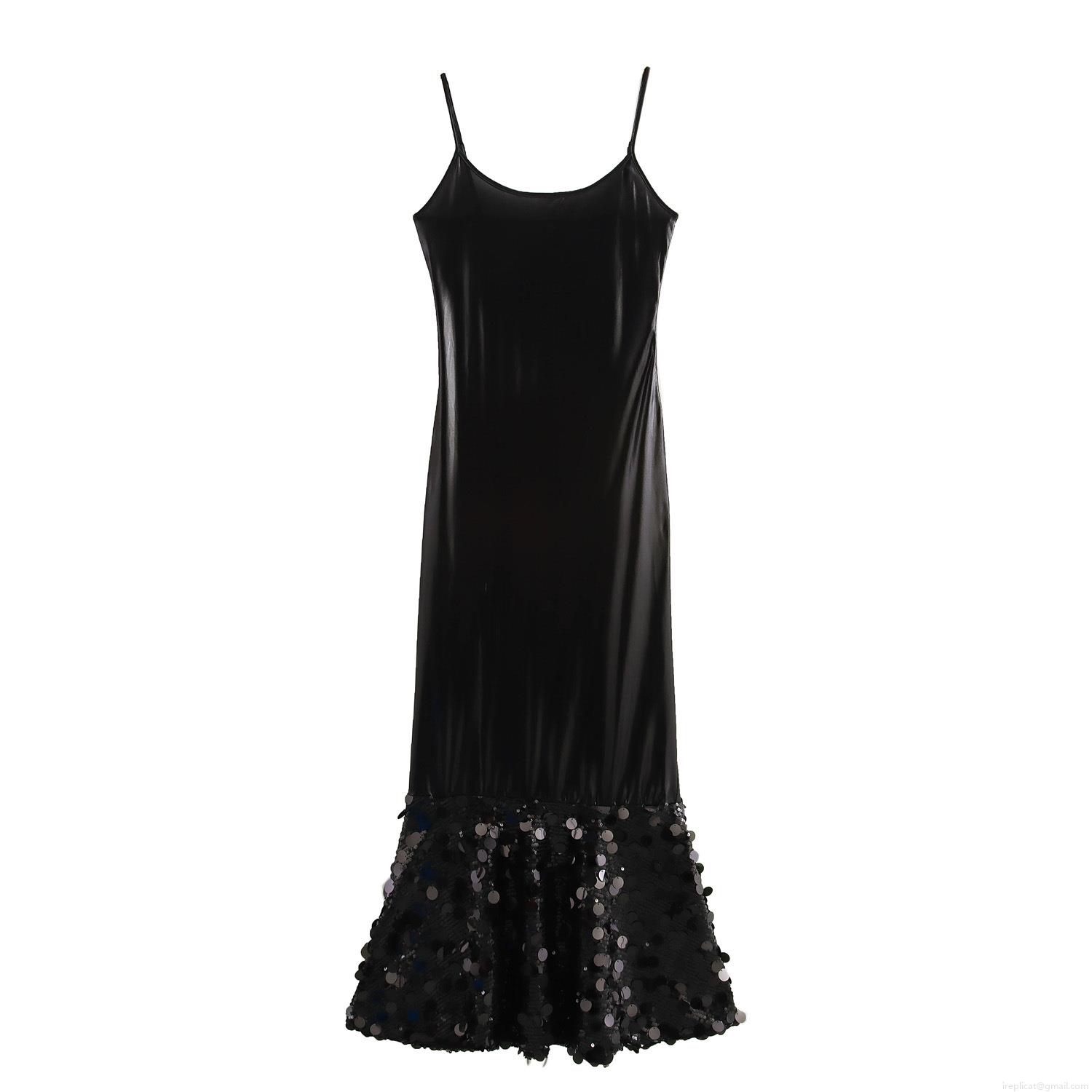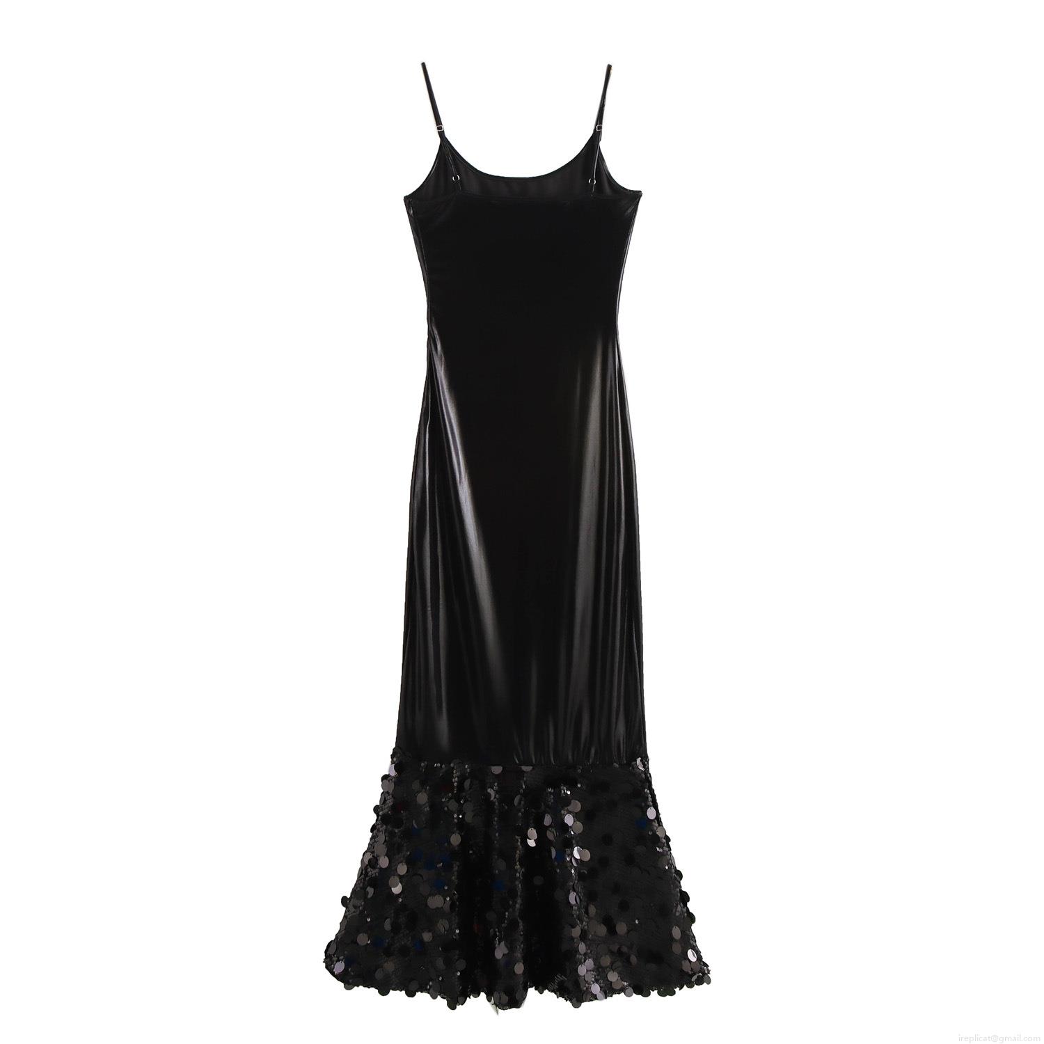 Women's Sexy Black Sequin Splicing Fishtail Maxi Dress Spaghetti Strap Slim Fit Evening Party Socialite Sleeveless Gown