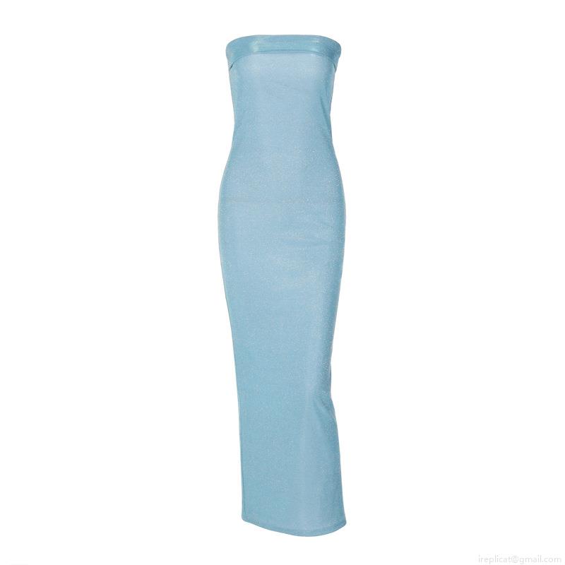 • Women's Sexy Blue Glitter Tube Top Maxi Dress Slim Fit Backless Shiny Party Evening Long Dress Elegant Bodycon Nightclub Outfits