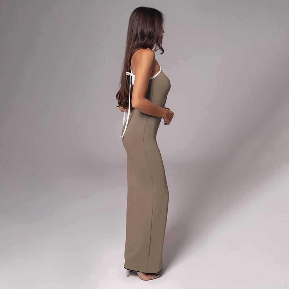 • Women's Sexy Bodycon Maxi Dress Contrast Binding Backless Slim Fit Tie Shoulder Strap Camisole Long Dress For Party Club Nightwear