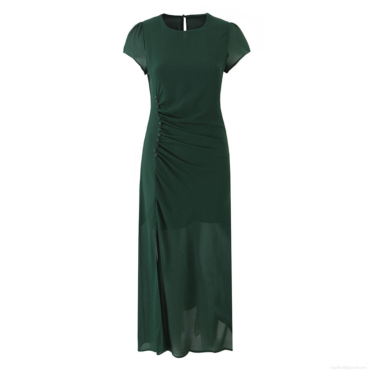 • Women's Sexy Bodycon Maxi Dress Polyester Chiffon Round Neck Fly Sleeve Side Slit Pleated Button Decoration Elegant Long Dresses for Party Evening Clubwear Summer Fashion