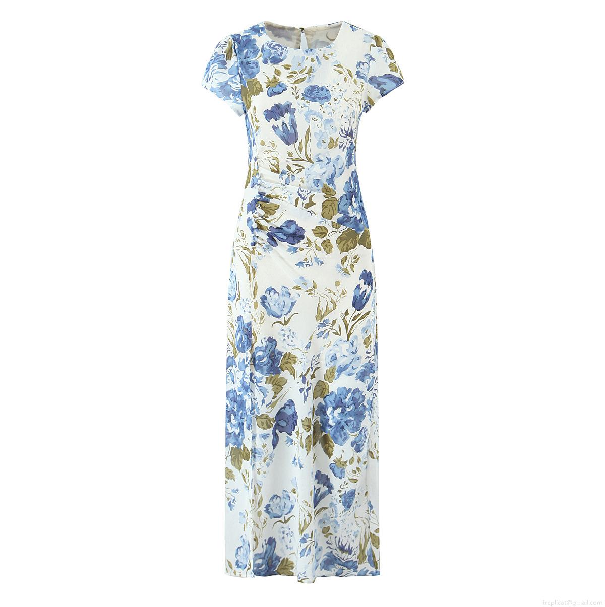 Solid Color, Floral Pattern, Pleats, Flowering Plants, Buttons, Gathering, Side Fork, Flying Sleeves, Perspective Splicing