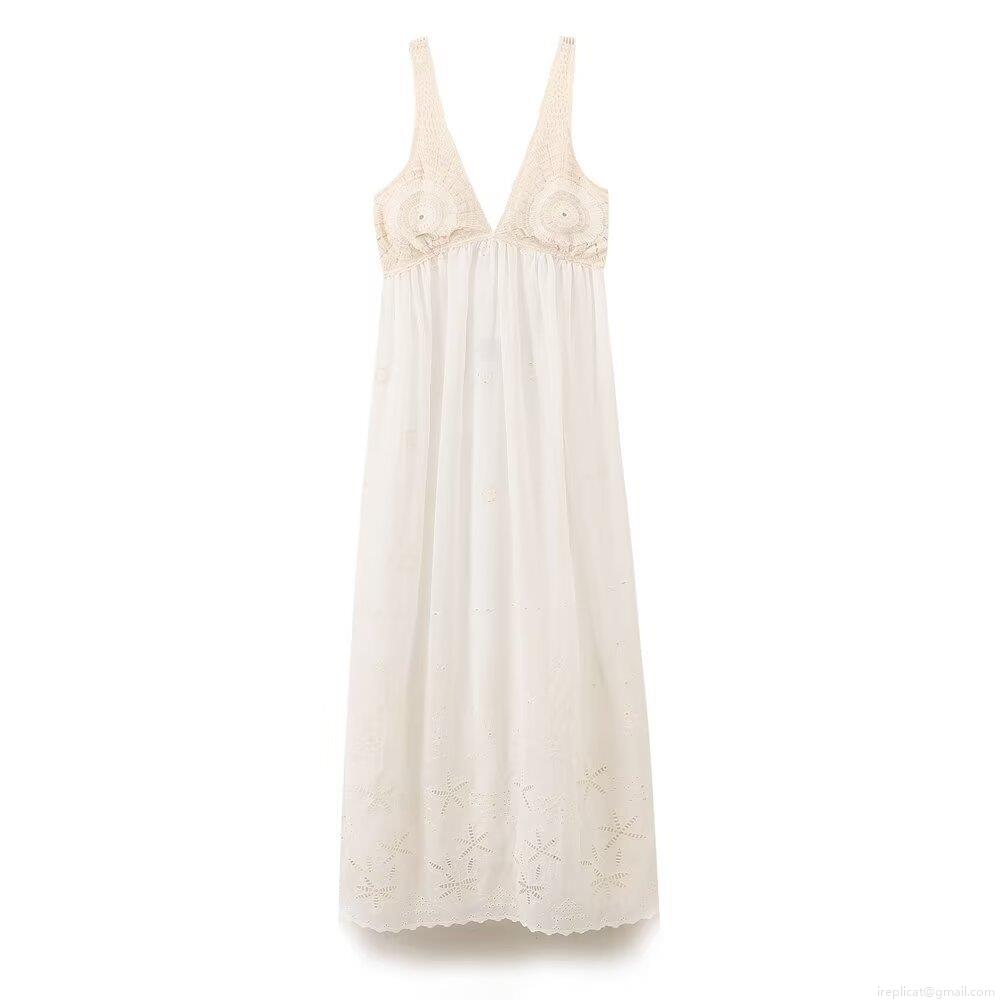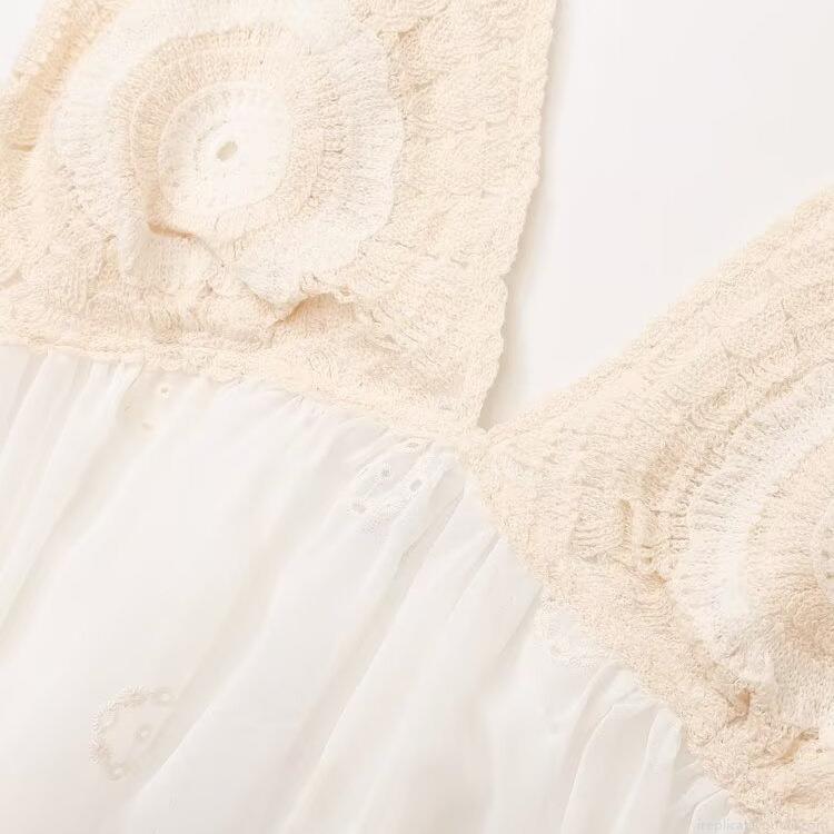 Solid Color, Splice, Hollow Out, Backless, Deep V, Crochet Hook, Floral Embroidery