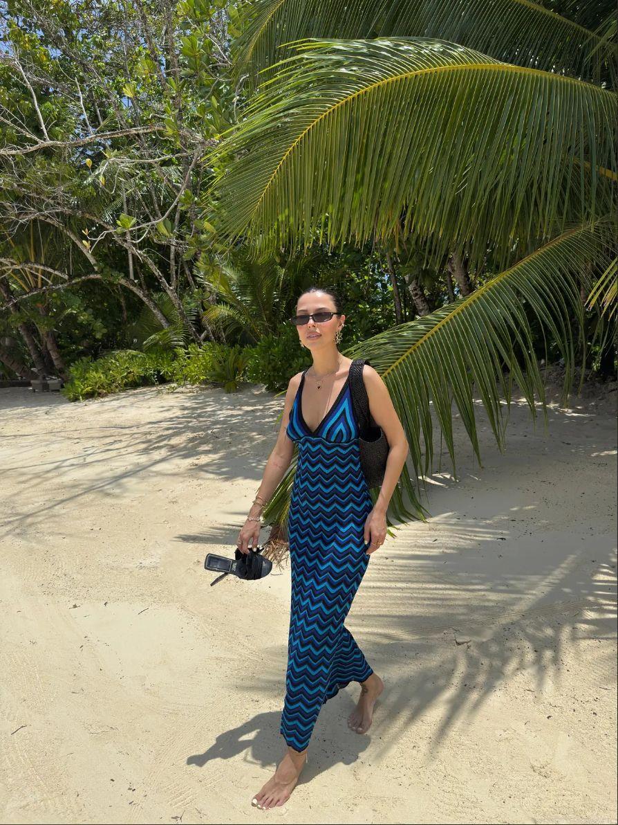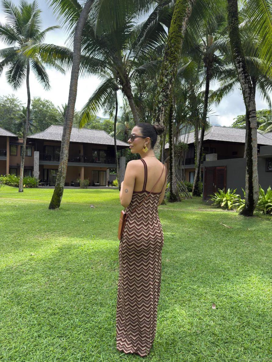 • Women's Sexy Chevron Striped Knit Maxi Dress V-Neck Backless Sleeveless Bodycon Camisole Long Dress For Beach Vacation Party