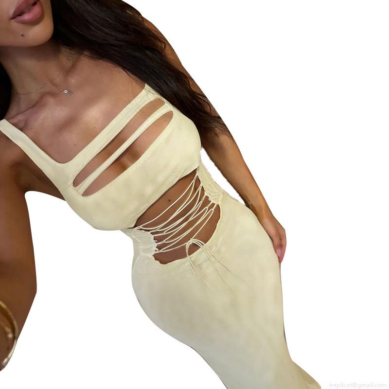 • Women's Sexy Cutout Lace-Up Bodycon Maxi Dress Sleeveless Solid Color High Waist Long Dress For Party Resort Club Summer Wear