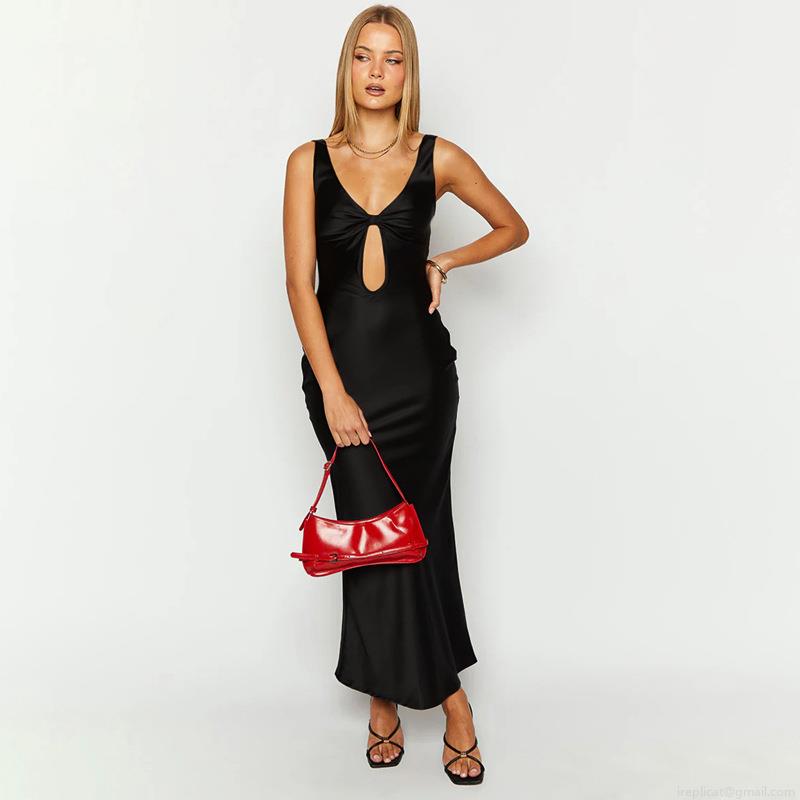 • Women's Sexy Cutout Maxi Dress Elegant V-Neck Sleeveless Backless Slim Fit Satin Finish Long Dress For Party Evening Wedding Vacation