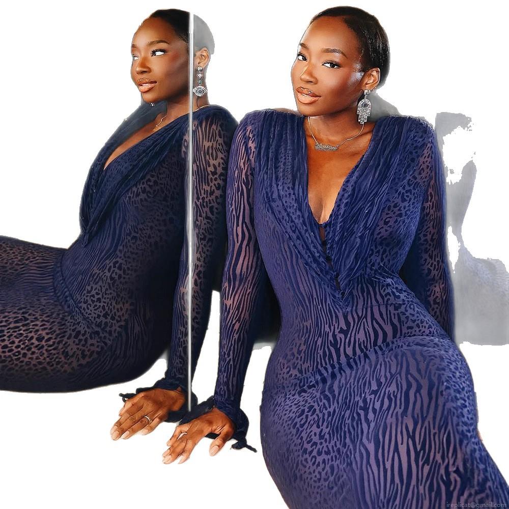 • Women's Sexy Deep V Neck Mesh See Through Maxi Dress Leopard Zebra Animal Print Long Sleeve Bodycon Party Evening Clubwear Polyester Spandex Dress