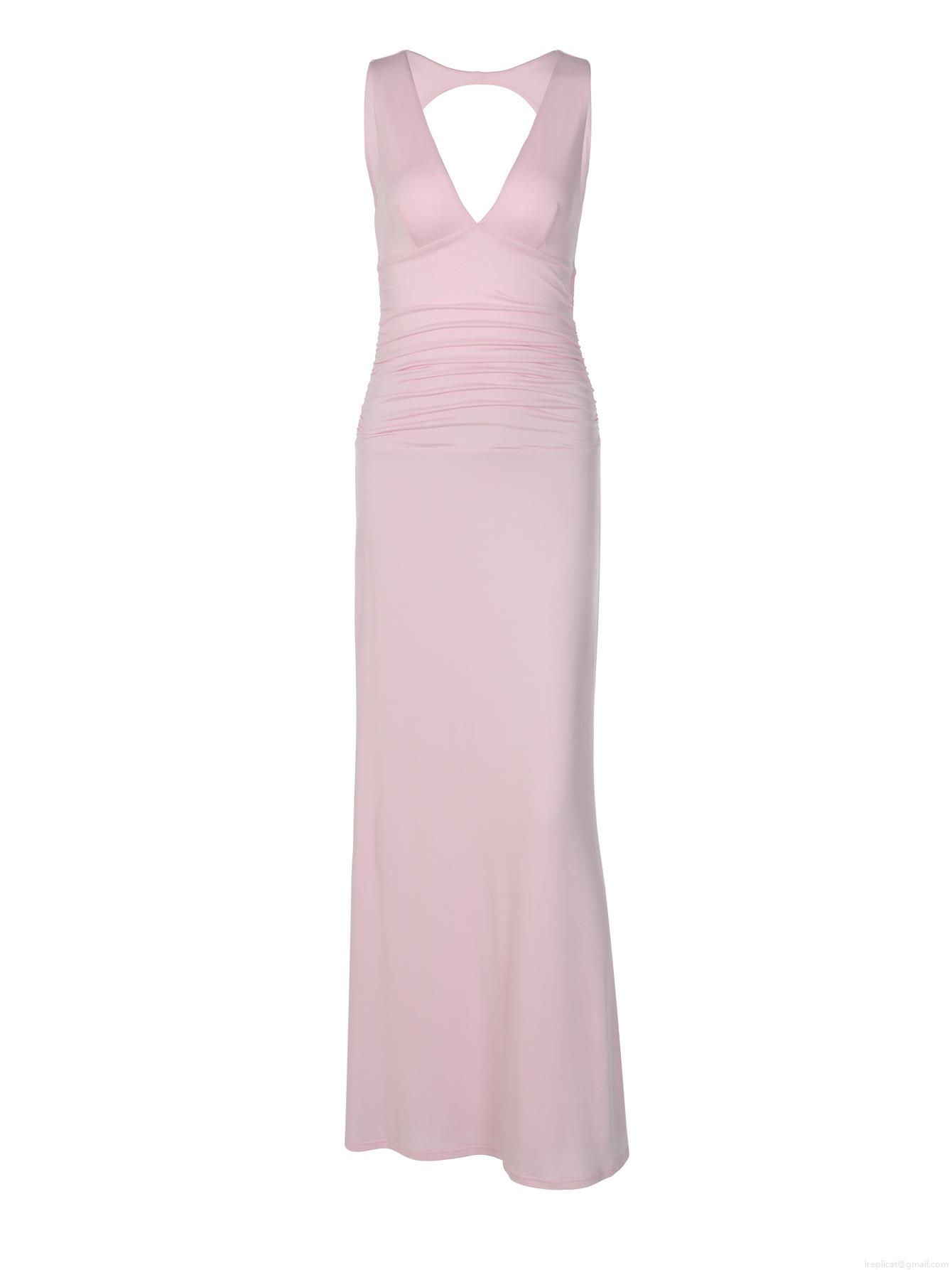 • Women's Sexy Deep V-Neck Backless Maxi Dress Elegant Pink Sleeveless Pleated Bodycon Slim Fit Party Evening Long Dress
