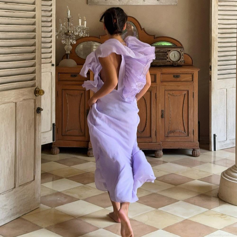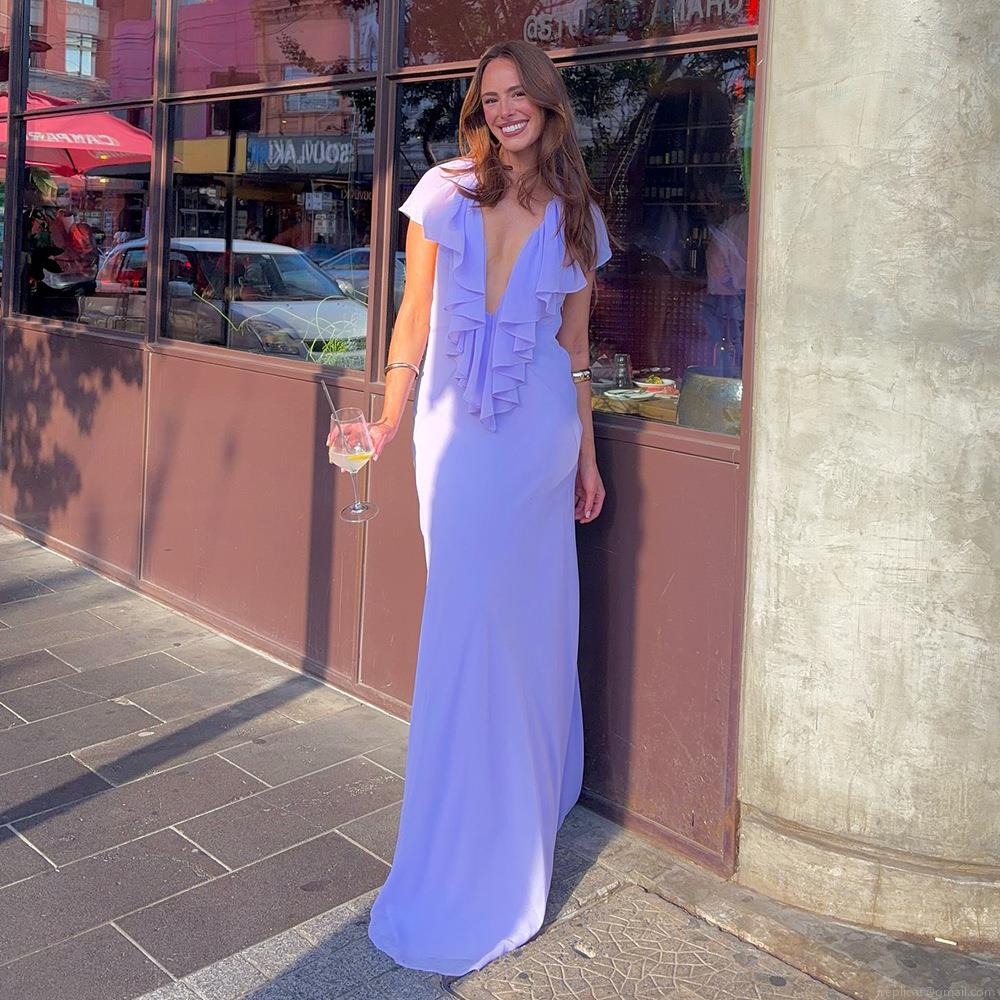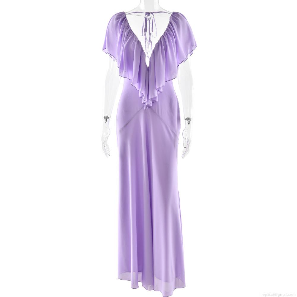 • Women's Sexy Deep V-Neck Layered Ruffle Backless Maxi Dress Sleeveless Chiffon Patchwork Tie Back Slim Fit Long Dress For Vacation Party