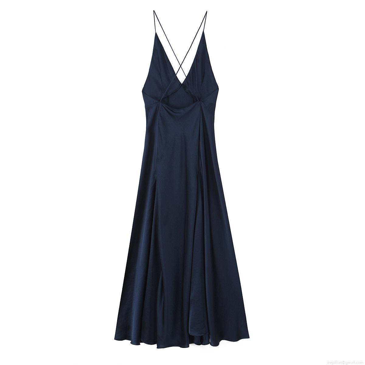 Solid Color, Backless, Satin Texture, Deep V-neck, Cross Thin Straps
