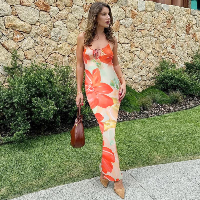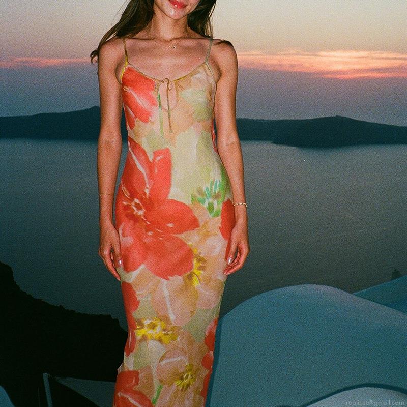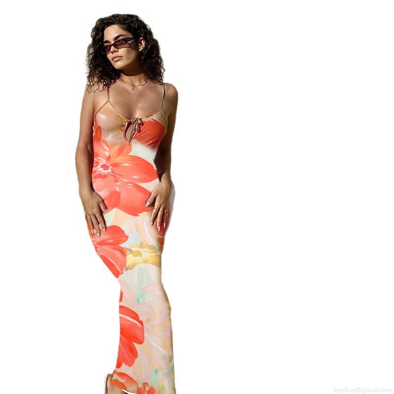 • Women's Sexy Floral Print Backless Maxi Dress V-Neck Hollow Out Sleeveless Sling Vacation Beach Long Dress Polyester Spandex High Waist Summer A-Line Dress