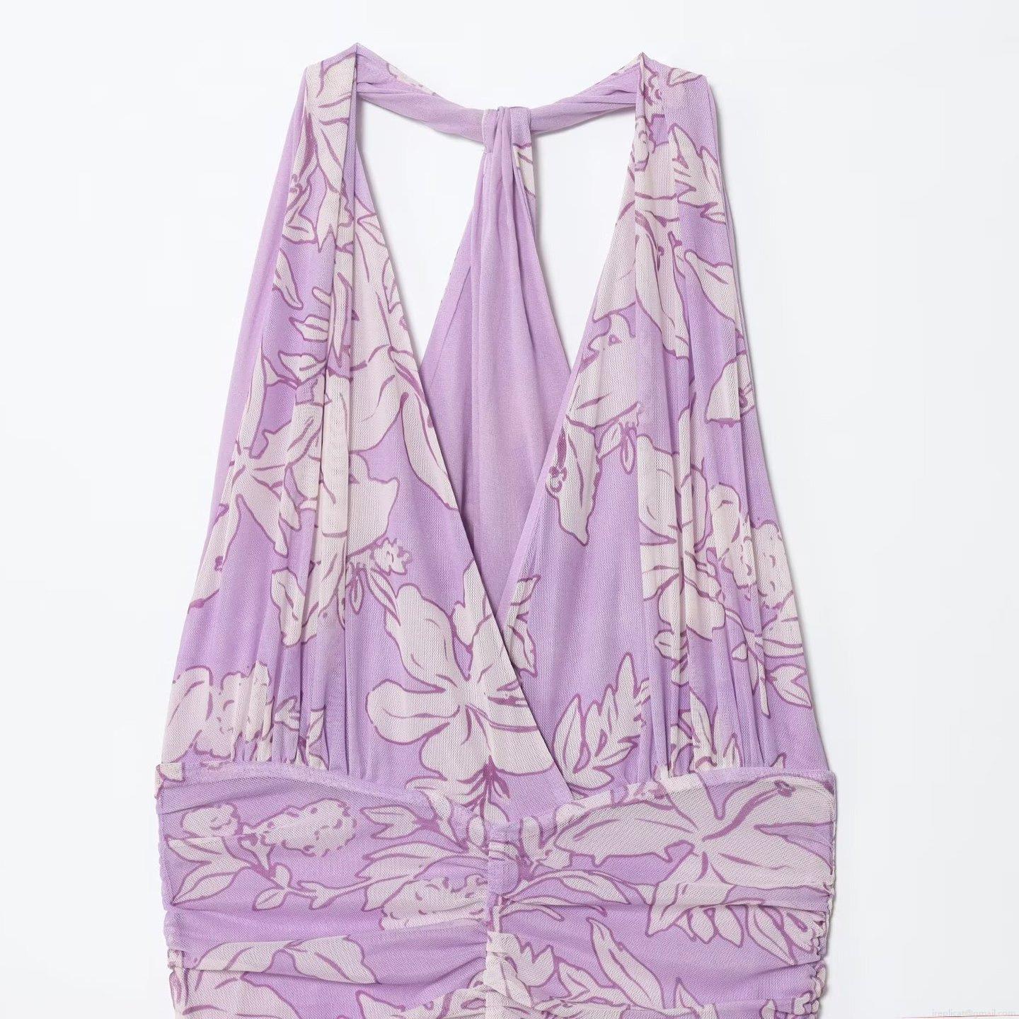 • Women's Sexy Floral Print Mesh Halter Maxi Dress Ruched V-Neck Sleeveless Bodycon Long Vacation Sundress Party Clubwear Summer Outfit