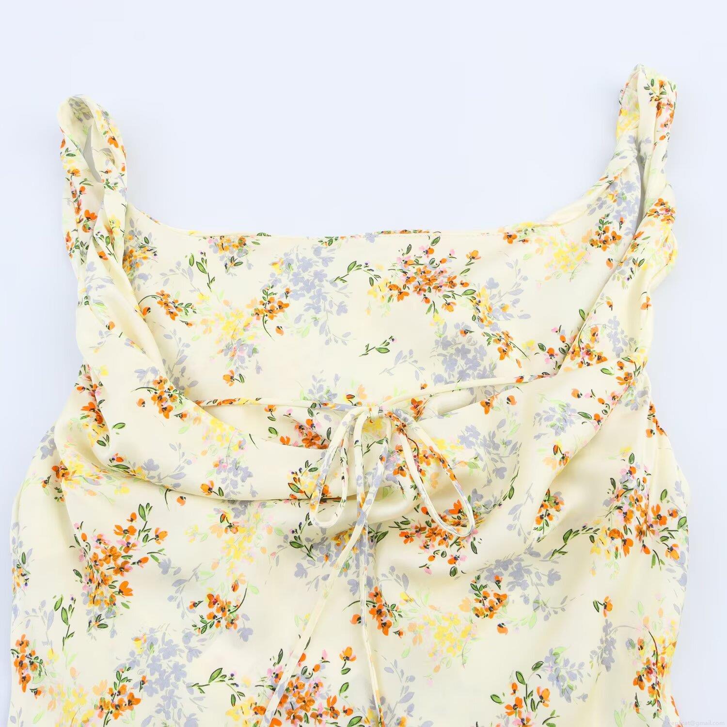 Floral Pattern, Printing, Straps, Backless, Satin Texture, Dangling