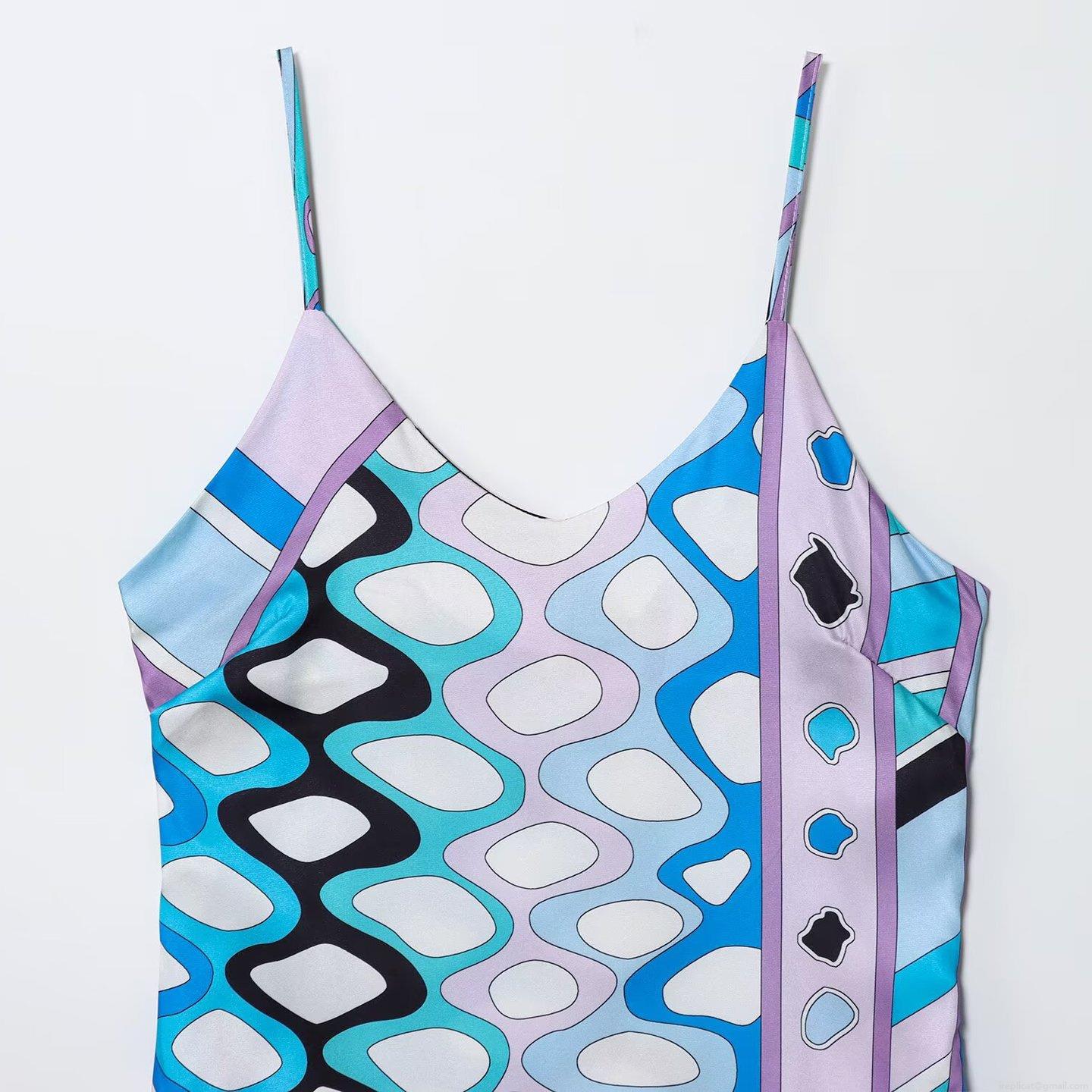 Splice, Waist shaping, V-neck, Backless, Thin Straps, Geometric Abstract Prints, Wavy Dots