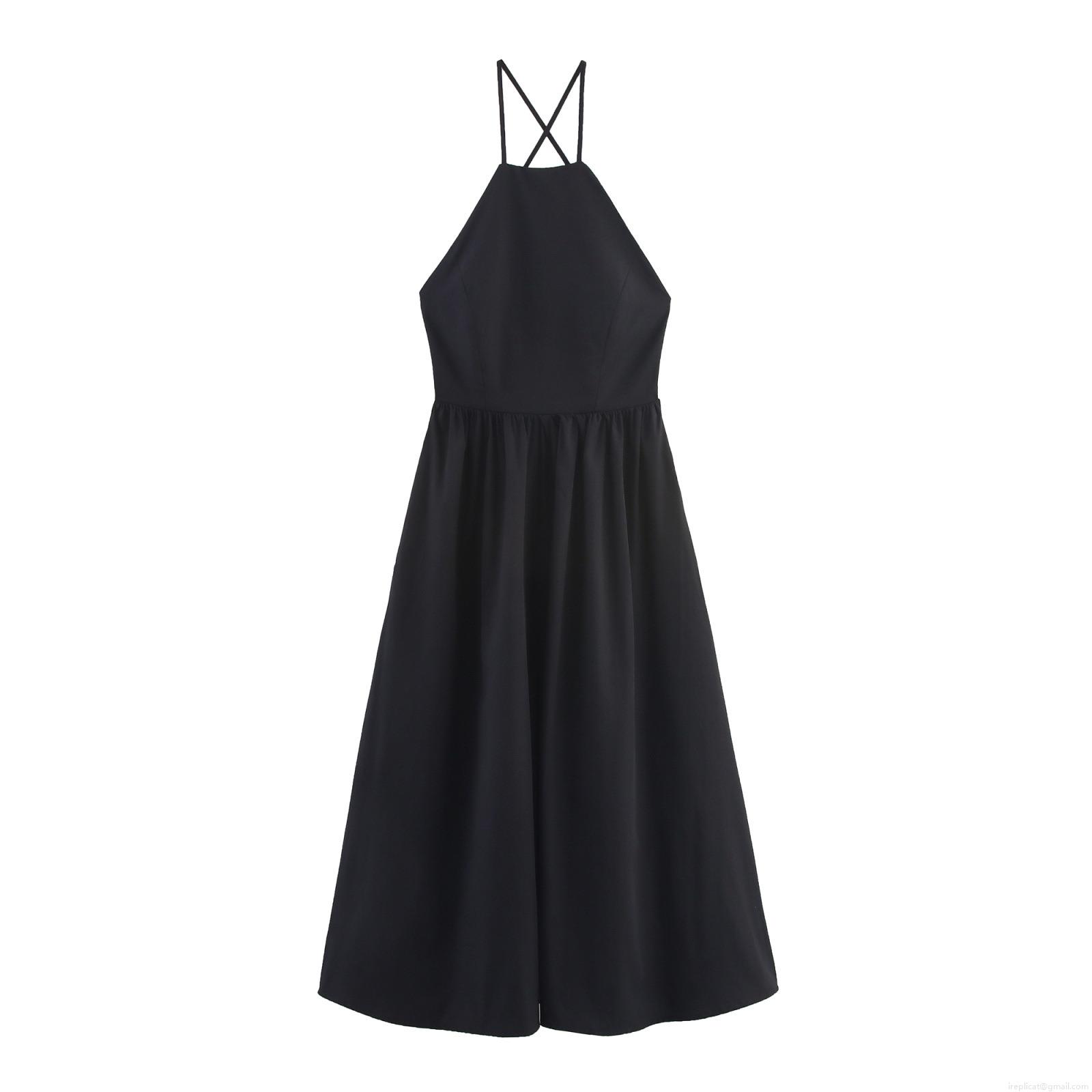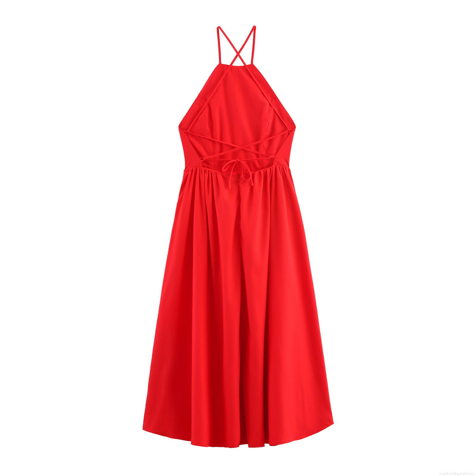 • Women's Sexy Halter Backless Cross Strap Maxi Dress Solid Color Sleeveless A-Line Party Dress Elegant Streetwear Evening Gown