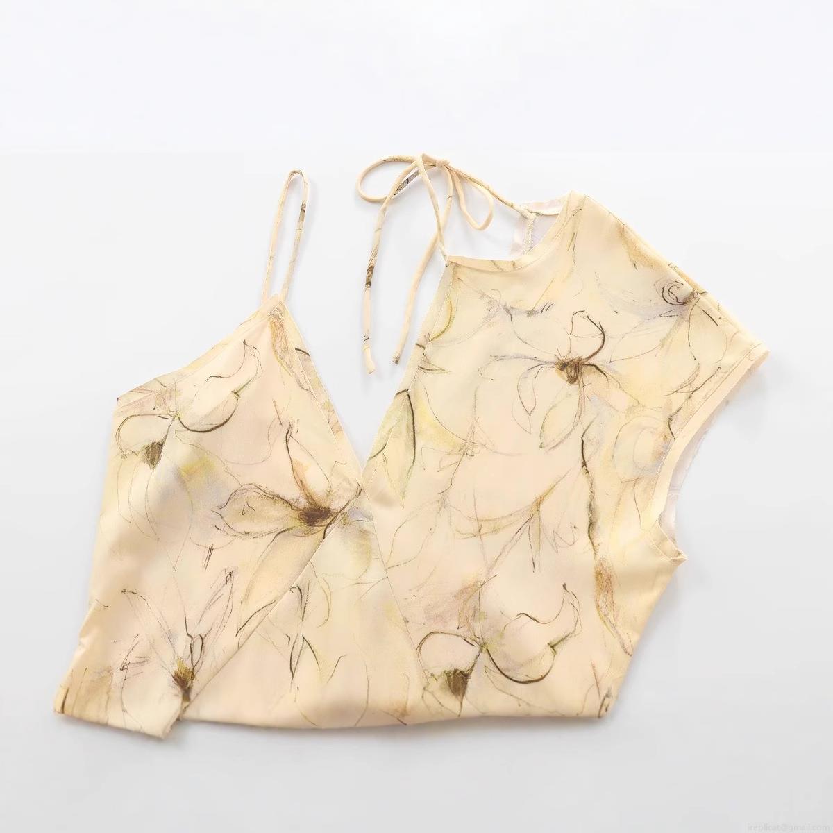 • Women's Sexy Halter Backless Floral Print Maxi Dress Sleeveless V-Neck Side Split Summer Beach Vacation Party Long Dress Crepe Polyester Fabric