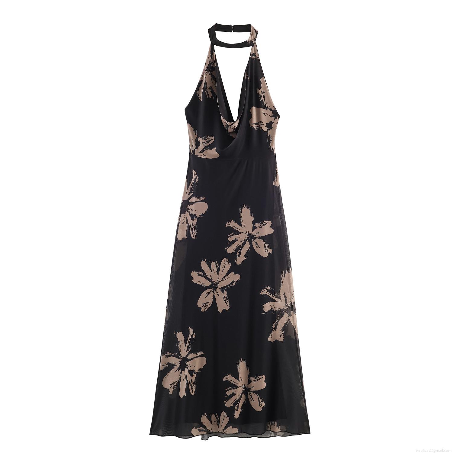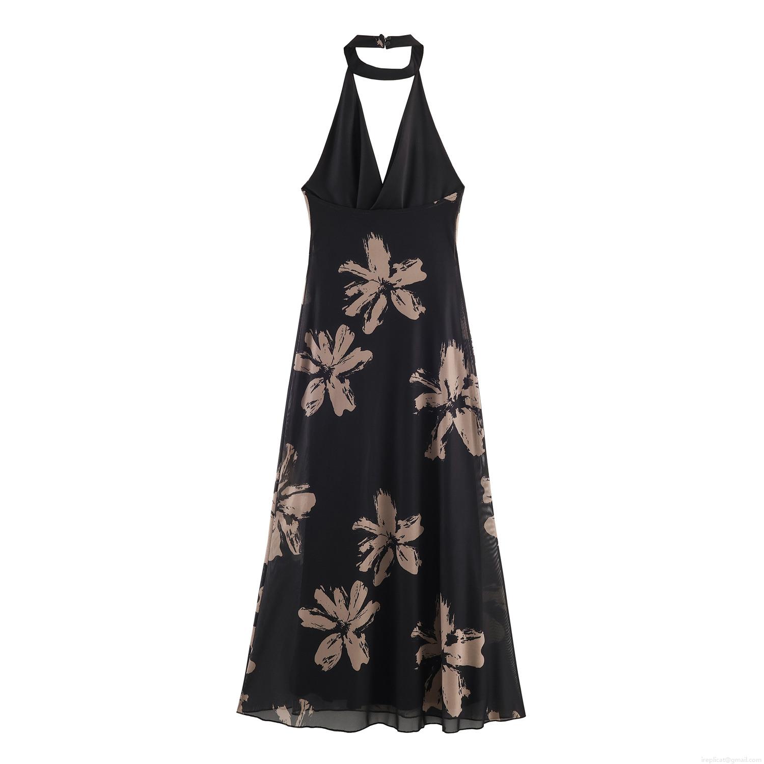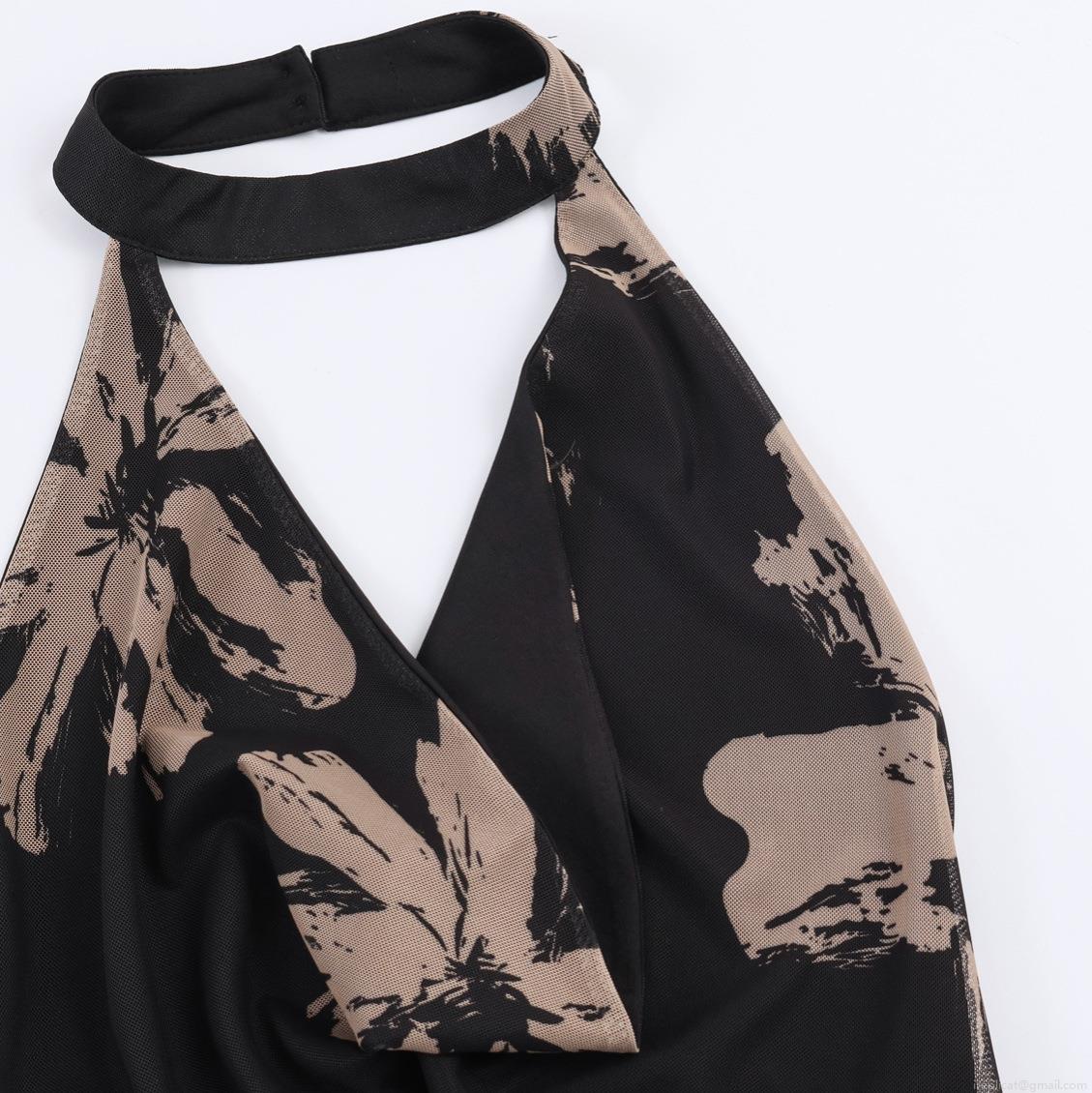 • Women's Sexy Halter Backless Maxi Dress Abstract Floral Print Polyester Mesh Sleeveless Bodycon Long Dress For Party Vacation Clubwear