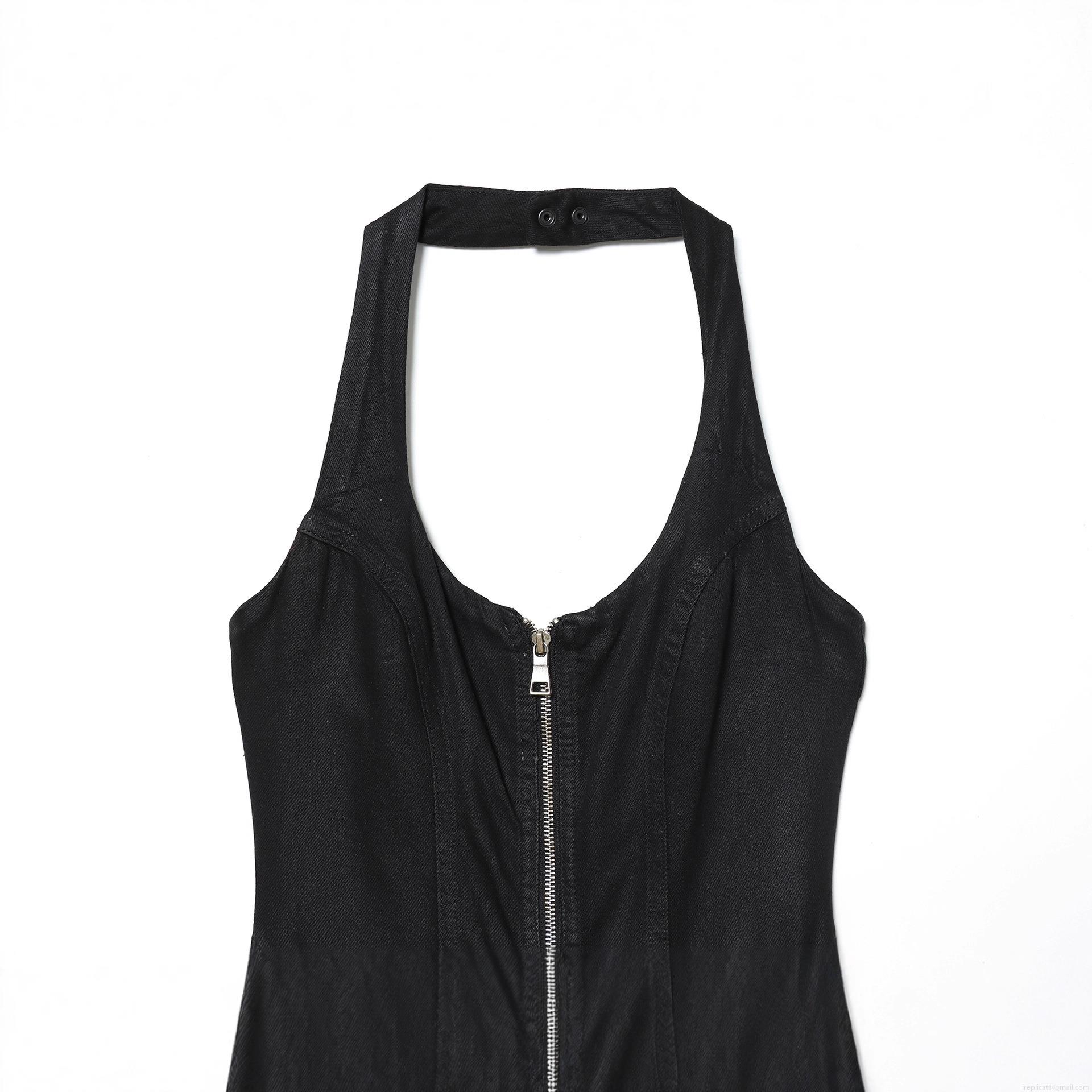 • Women's Sexy Halter Backless Maxi Dress Black Coated Denim Polyester Front Zipper Streetwear Bodycon Clubwear Evening Party Dress For Women
