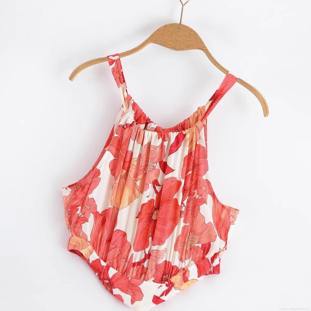 Pleats, Neckband, Lace, Backless, Hollow Design, Large Floral Print