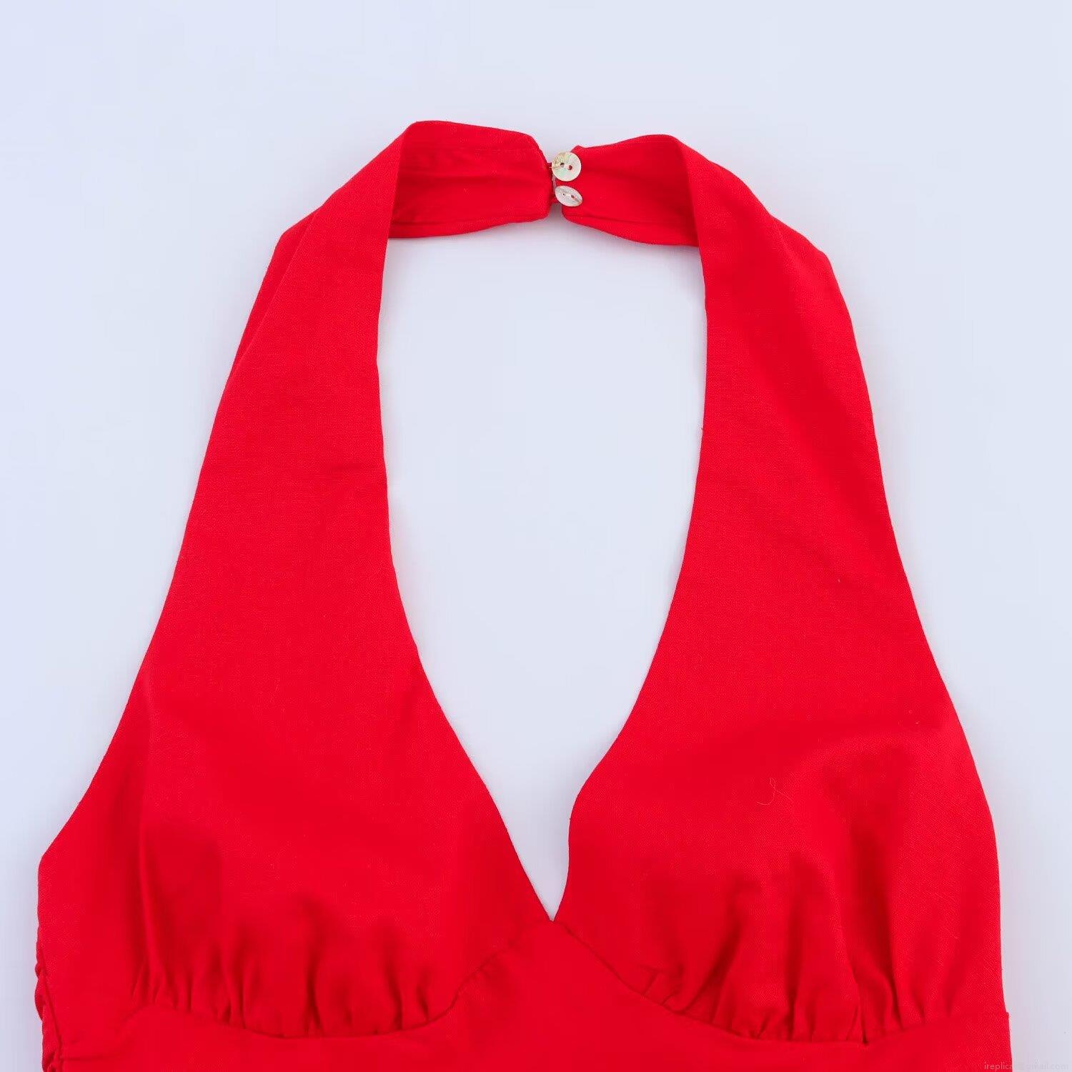 Solid Color, Pleats, Neckband, Backless, Deep V, High Slit