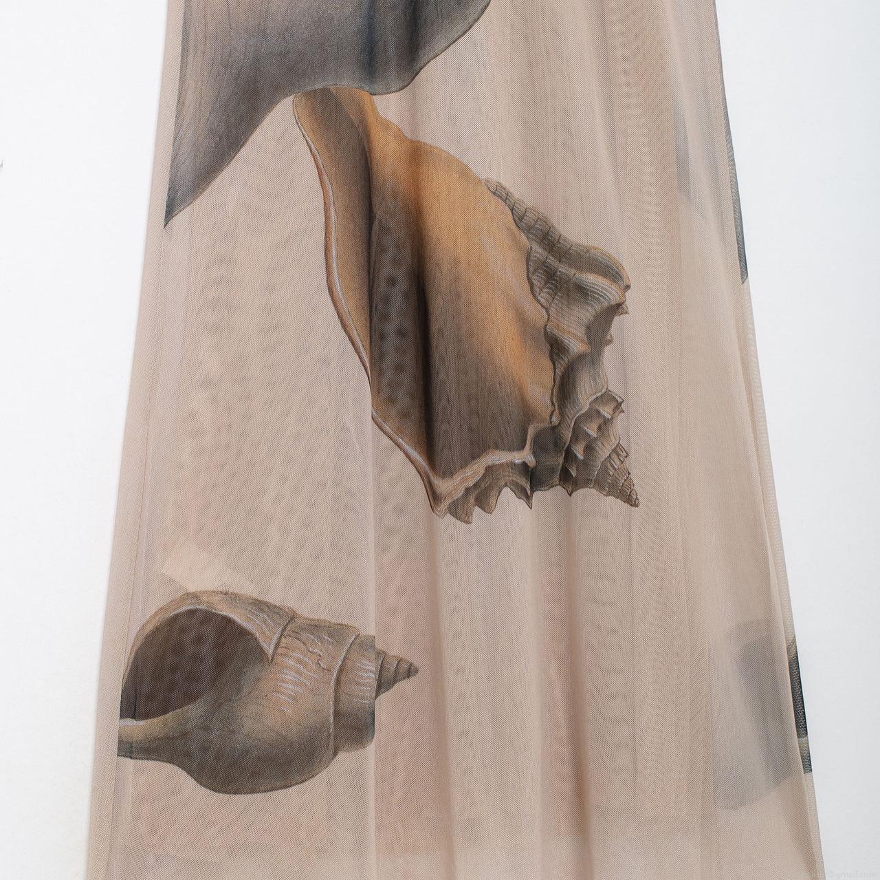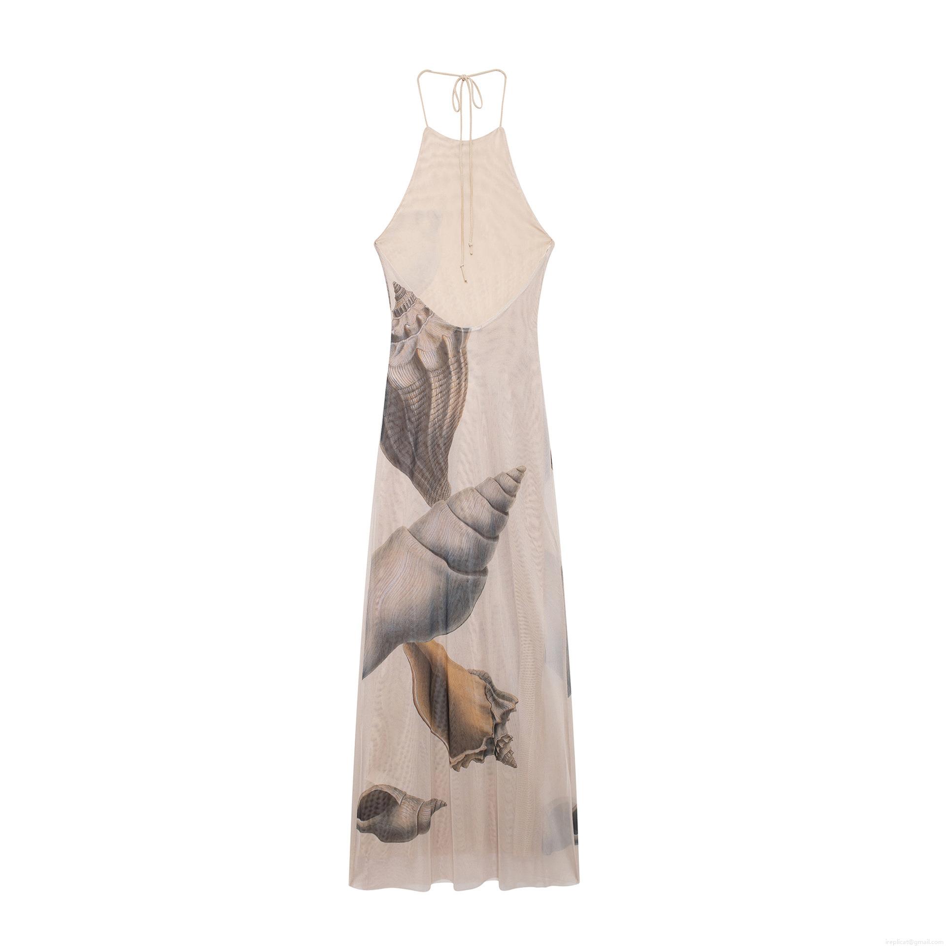 • Women's Sexy Halter Neck Backless Maxi Dress Elegant Seashell Print Mesh Polyester Beach Vacation Party Long Dress