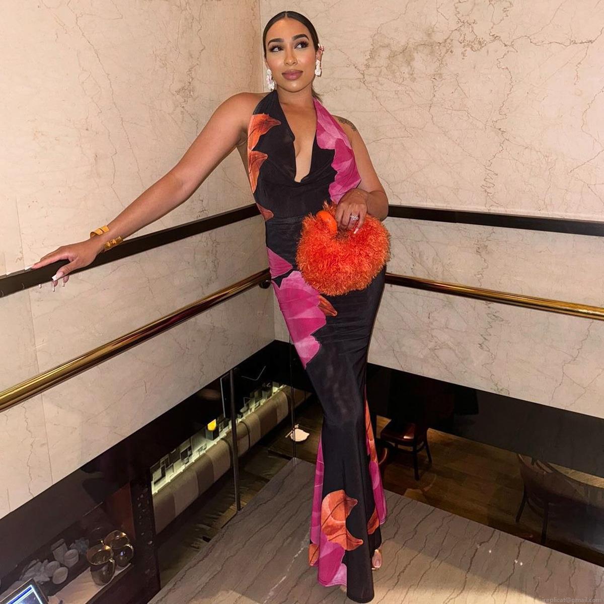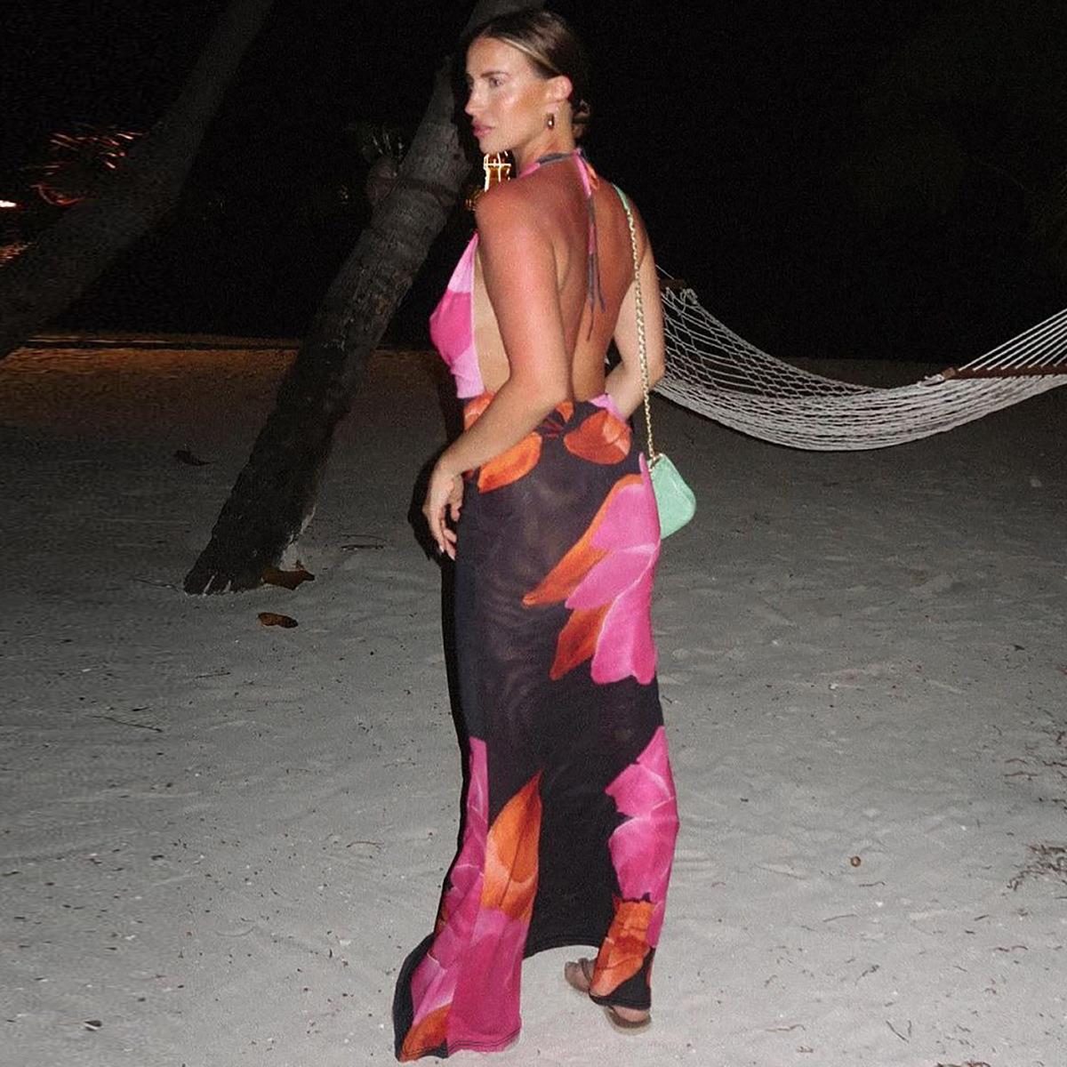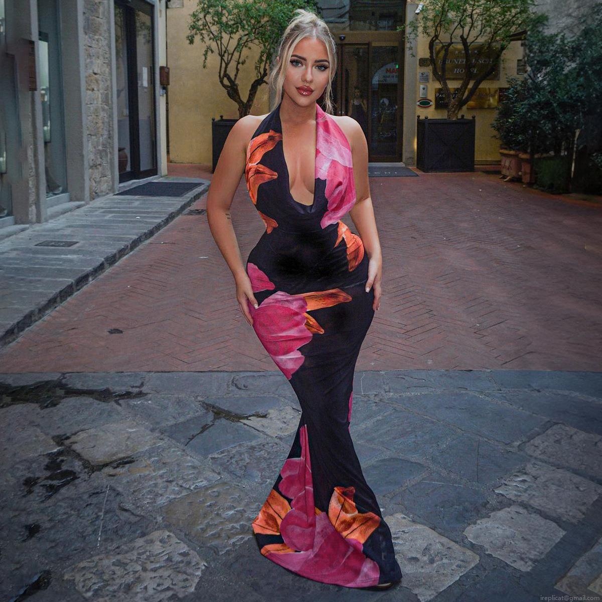 • Women's Sexy Halter Neck Backless Maxi Dress Floral Print Slim Fit Long Dress For Summer Beach Vacation Party Bodycon Dress Polyester Spandex Blend