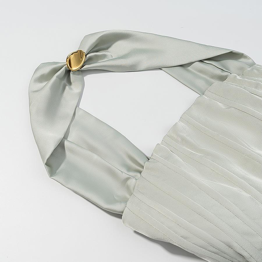 Solid Color, Pleats, Waist shaping, Neckband, Lace, Backless