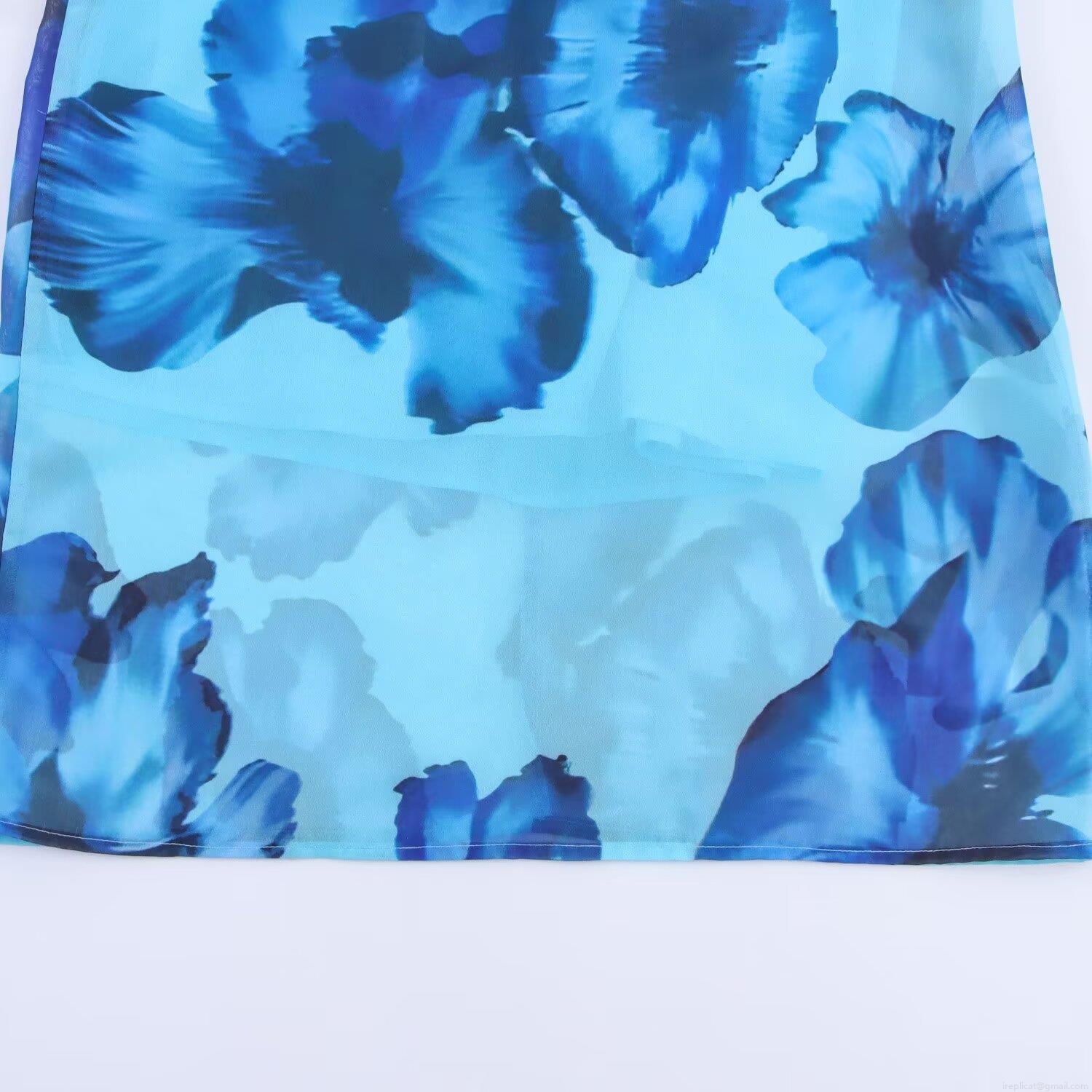 • Women's Sexy Halter Neck Backless Slit Maxi Dress Blue Floral Print Chiffon Sleeveless Vacation Elegant Long Flowy Sundress Party Evening Wear