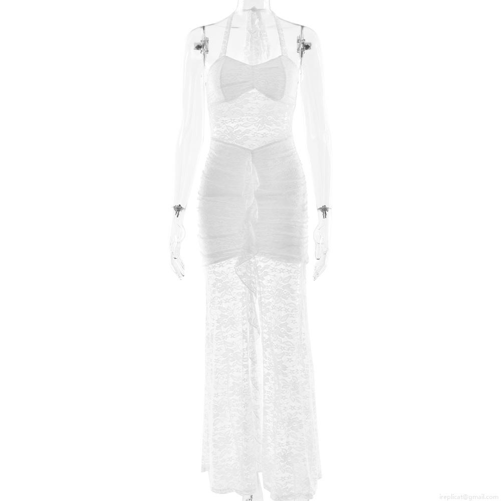 • Women's Sexy Halter Neck Lace Maxi Dress Summer Sleeveless Backless High Slit Slim Fit Bodycon Long Party Evening Dress for Women