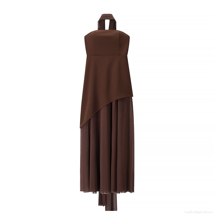 • Women's Sexy Halter Neck Mesh Patchwork Maxi Dress Elegant Backless Off-Shoulder Asymmetrical Hem Long Evening Gown Bodycon Party Dress For Ladies