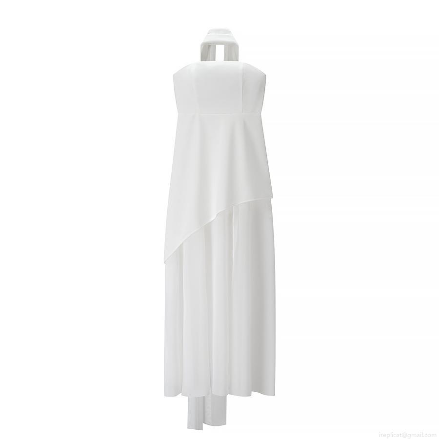 Solid Color, Neckband, Off-shoulder, Backless, Mesh Splicing, Irregular Hem