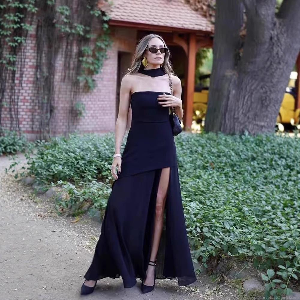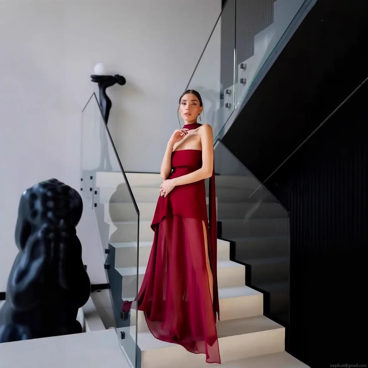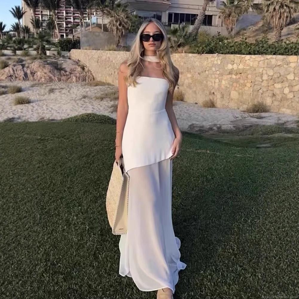 • Women's Sexy Halter Neck Mesh Patchwork Maxi Dress Elegant Solid Color Irregular Hem Sleeveless Backless Evening Party Cocktail Long Dress Gown