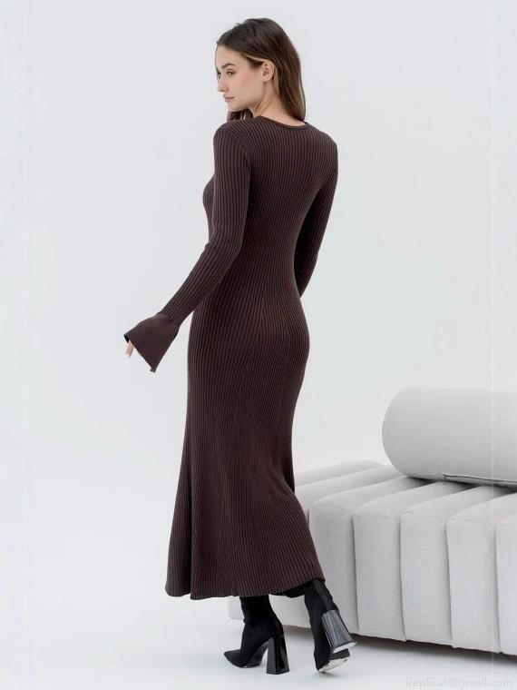 • Women's Sexy Heart Shaped Cutout Knitted Maxi Dress Autumn Winter Elegant Hepburn Style Slim Fit Flare Sleeve Long Dress Cotton Blend Ribbed Knit Dress