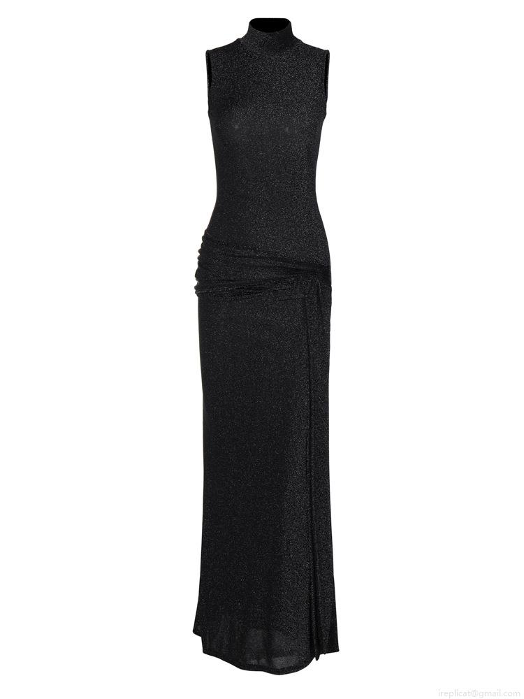Women's Sexy High Neck Sleeveless Maxi Dress Shiny Glitter Slim Fit Evening Party Gown with High Slit Elegant Ladies Formal Celebration Long Dress