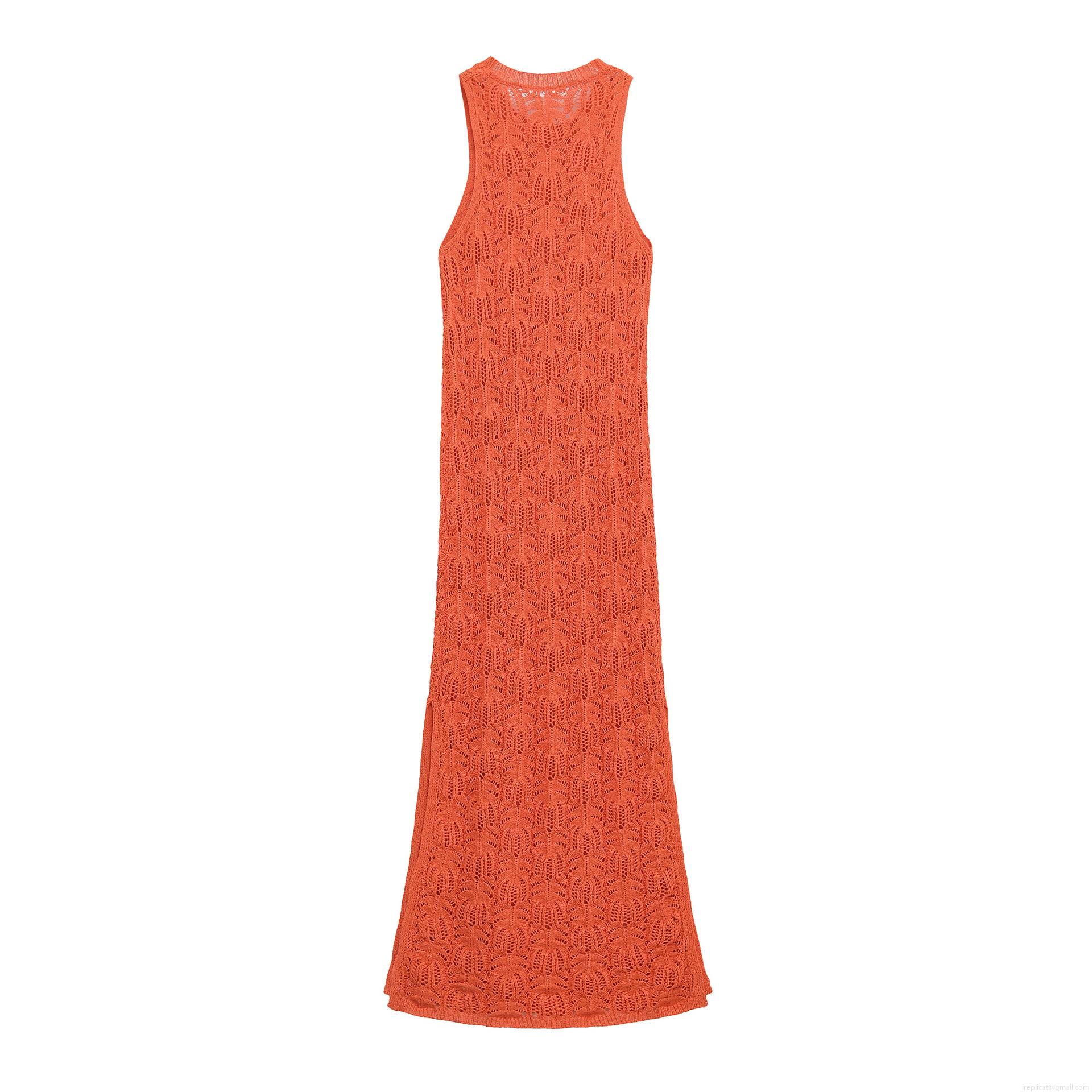 • Women's Sexy Hollow Out Crochet Maxi Dress Mercerized Cotton Sleeveless Round Neck Orange Red Knitted Bodycon Long Dress For Beach Vacation Party