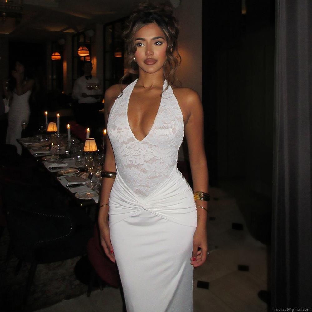 Women's Sexy Lace Halter Neck Maxi Dress Slim Fit Backless Sleeveless Milk Silk Evening Party Long Gown Bodycon Fish Tail Dress