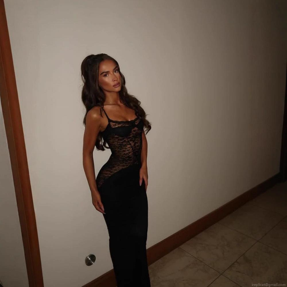 • Women's Sexy Lace Patchwork Spaghetti Strap Maxi Dress Elegant Slim Fit Evening Party Bodycon Long Dress Polyester Spandex