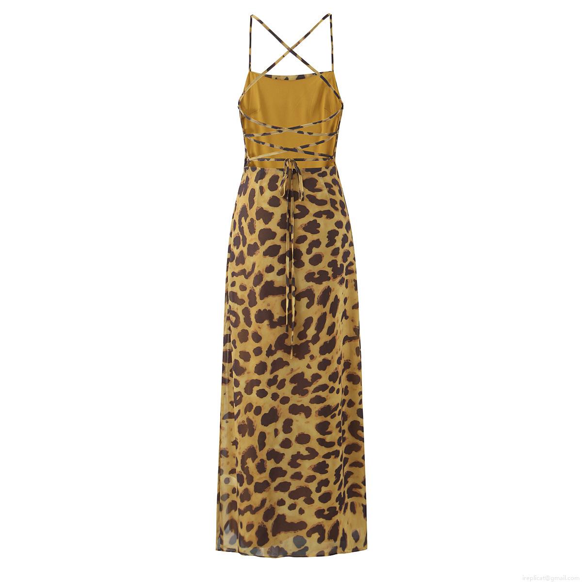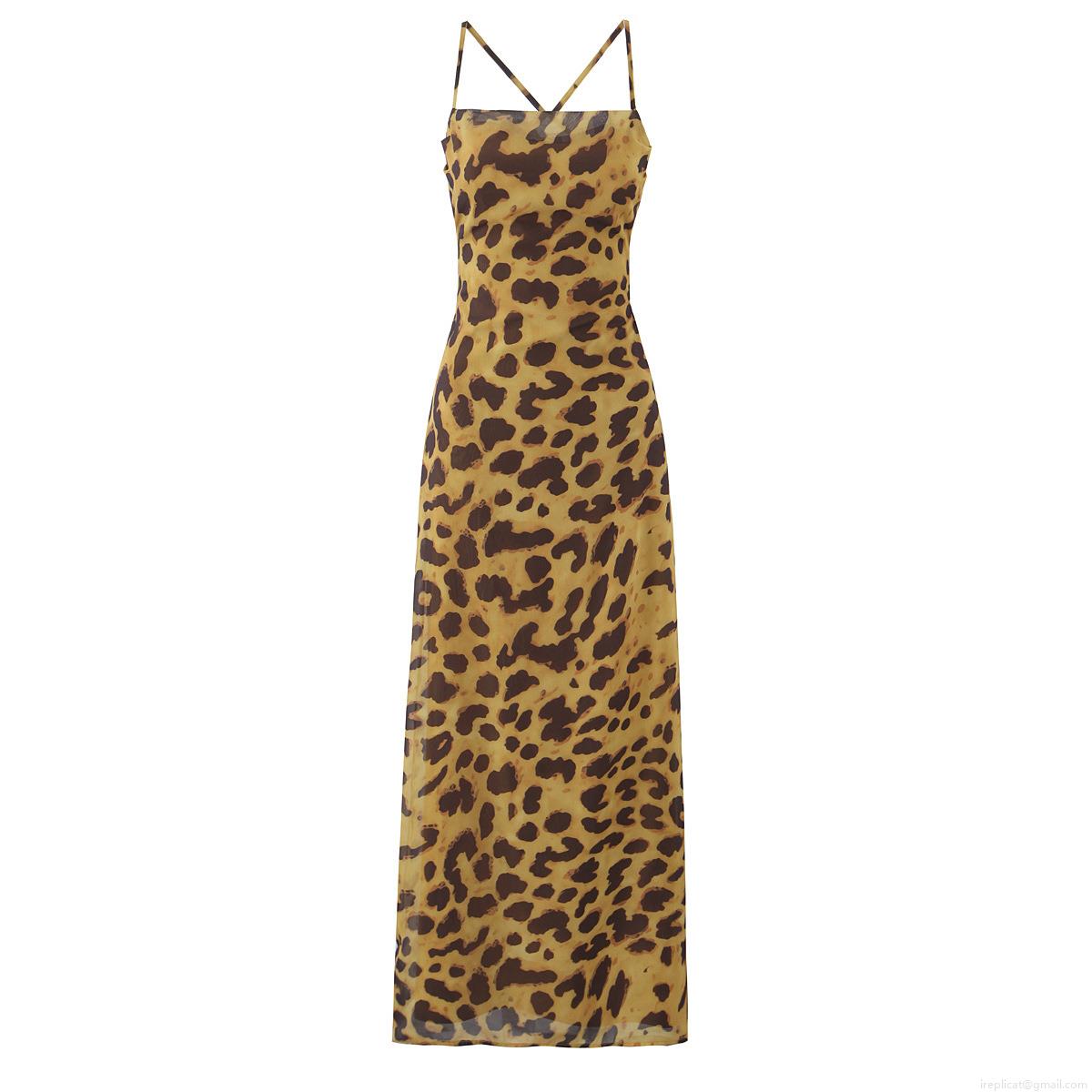 • Women's Sexy Leopard Print Halter Maxi Dress Backless Cross Straps Slim Fit Sleeveless Polyester Long Dresses For Summer Beach Party Streetwear