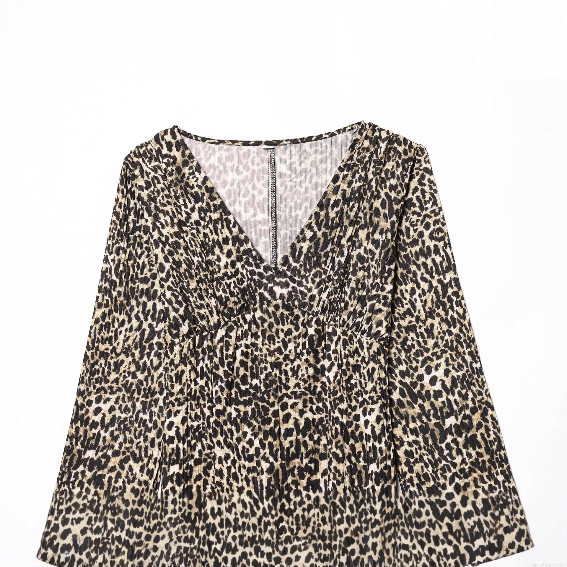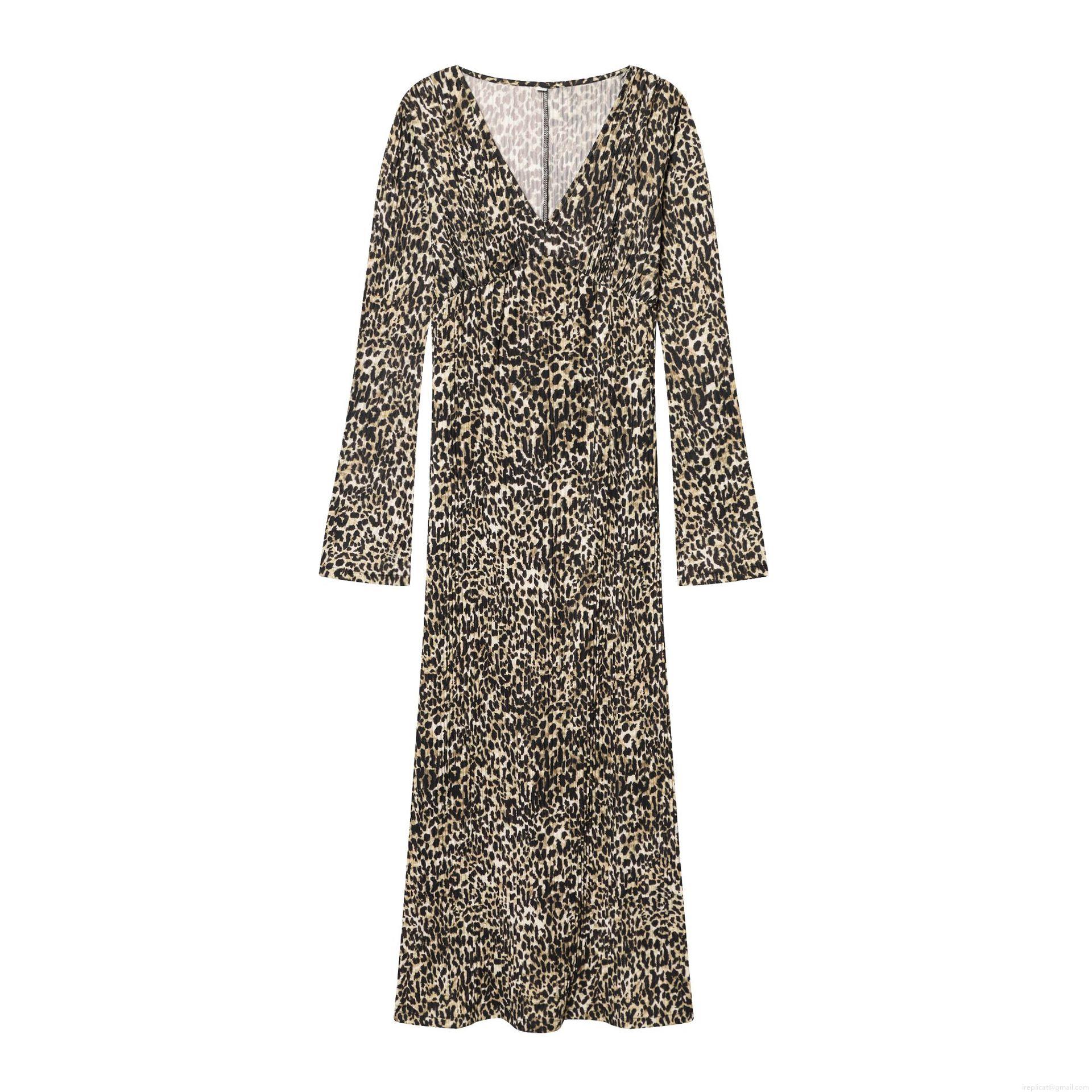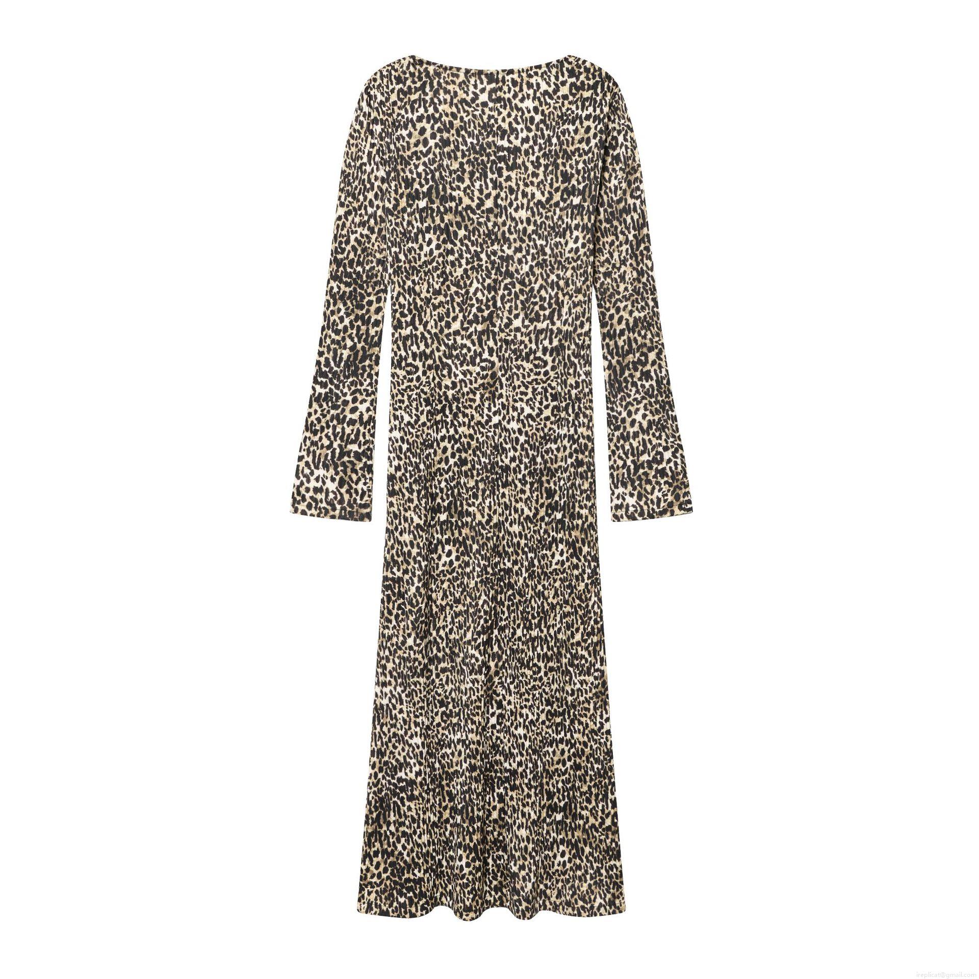 • Women's Sexy Leopard Print Long Sleeve Maxi Dress Slim Fit V-Neck Empire Waist Pleated Bodycon Long Dresses For Party Club Ladies Fashion