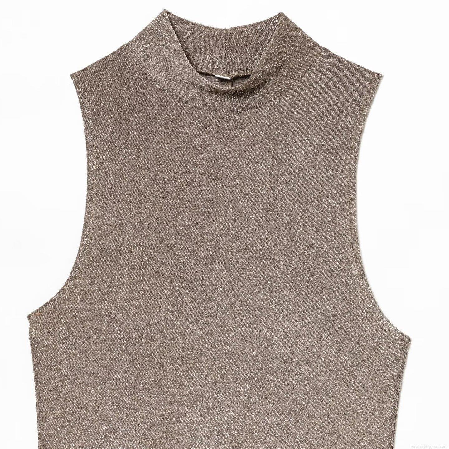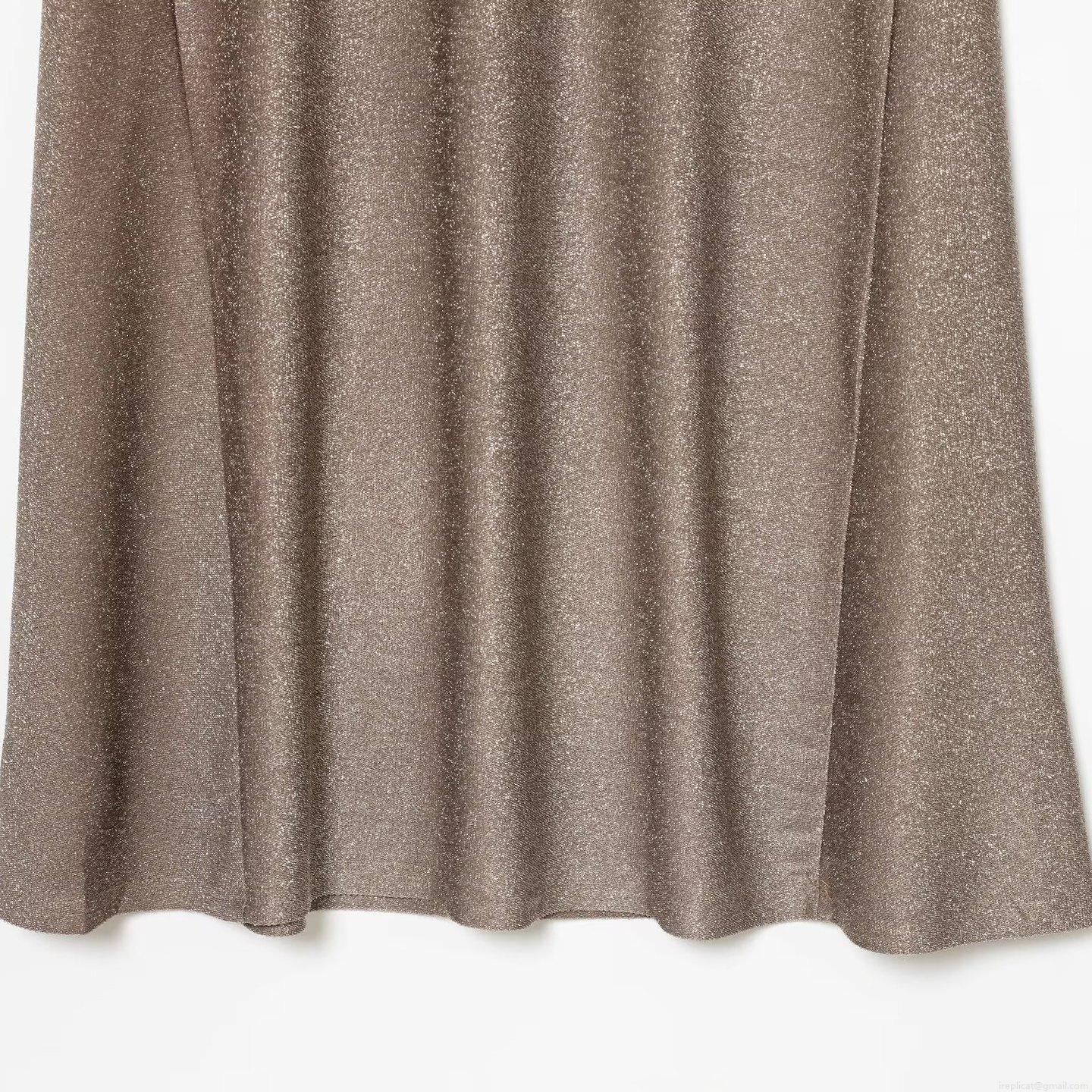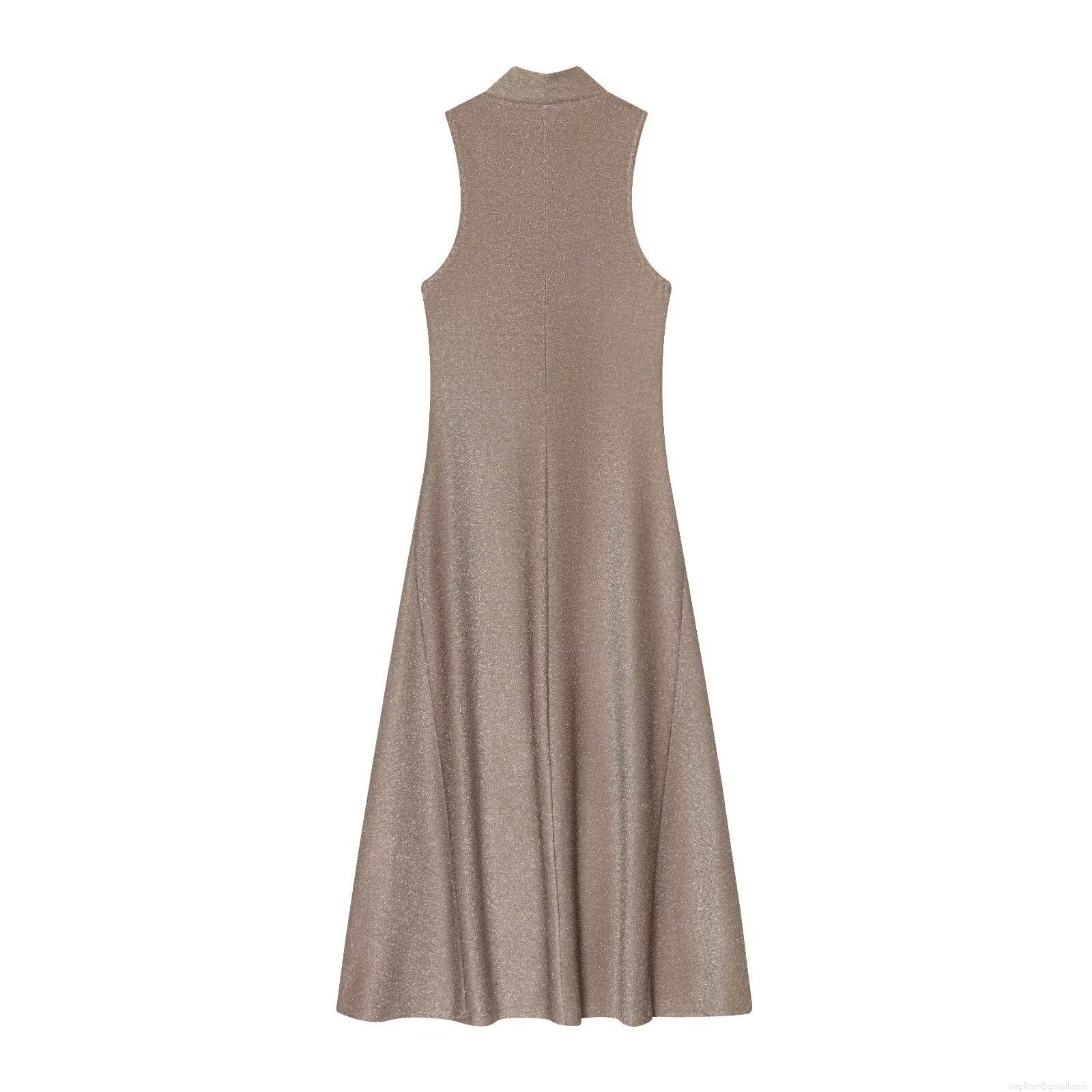 • Women's Sexy Metallic Lurex Maxi Dress Elegant Slim Fit Ruched Sleeveless High Neck A-Line Evening Party Gown Bronze Camel