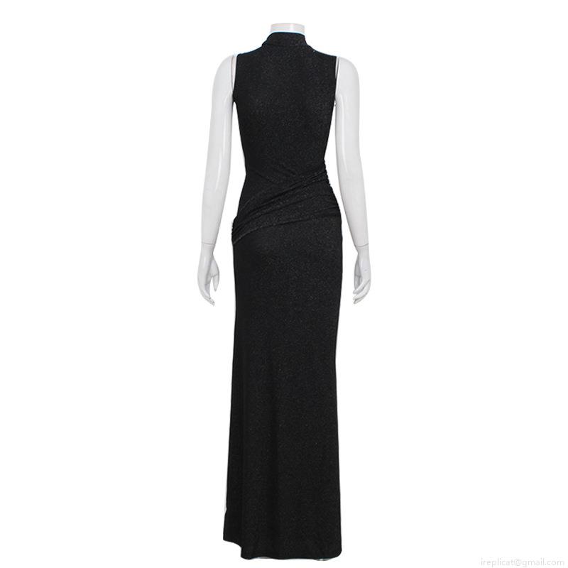 • Women's Sexy Mock Neck Sleeveless Lurex Bodycon Maxi Dress With Side Streamer Glitter Slim Fit Sparkly Long Dress For Evening Party Clubwear