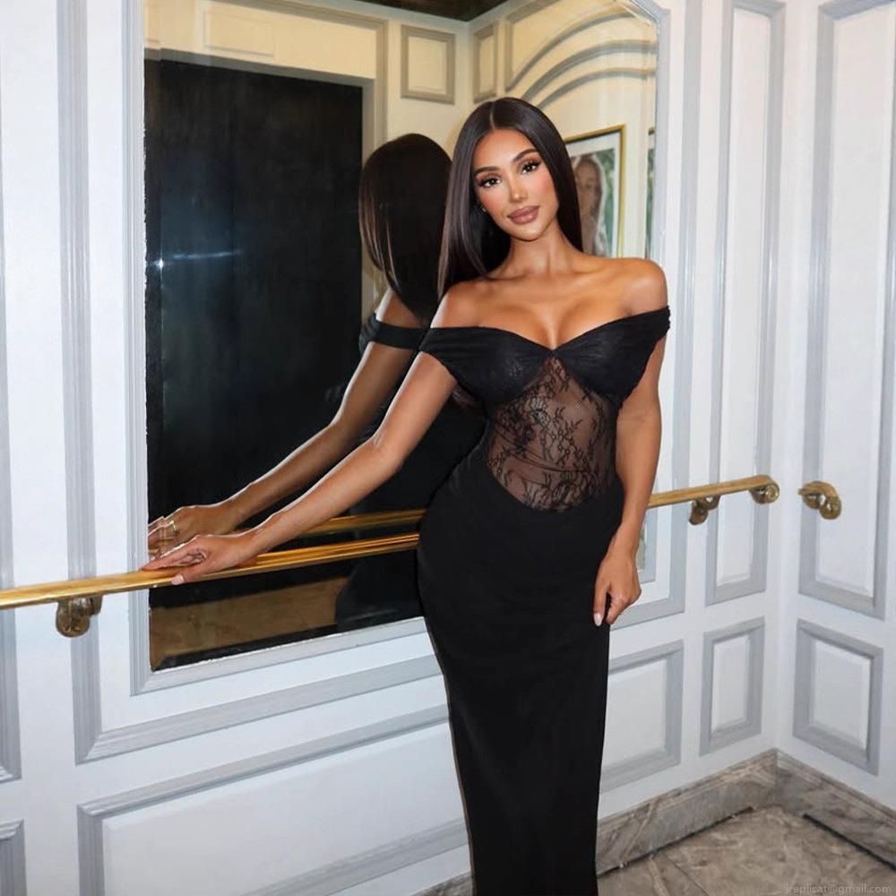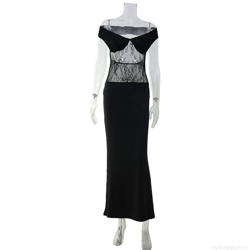 • Women's Sexy Off Shoulder Maxi Dress Elegant Lace Patchwork Slim Fit Bodycon Evening Party Long Dress Ladies High Waist Night Out Outfit