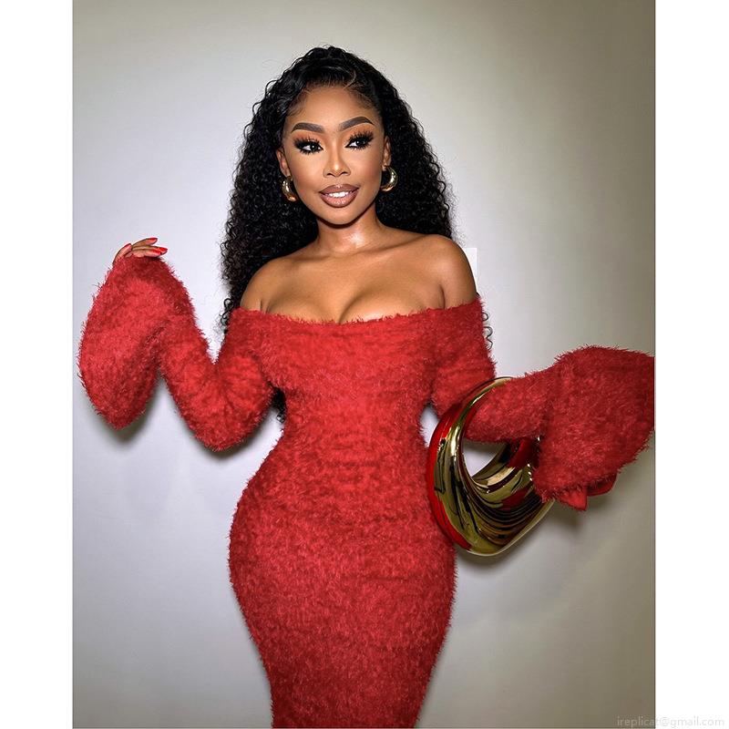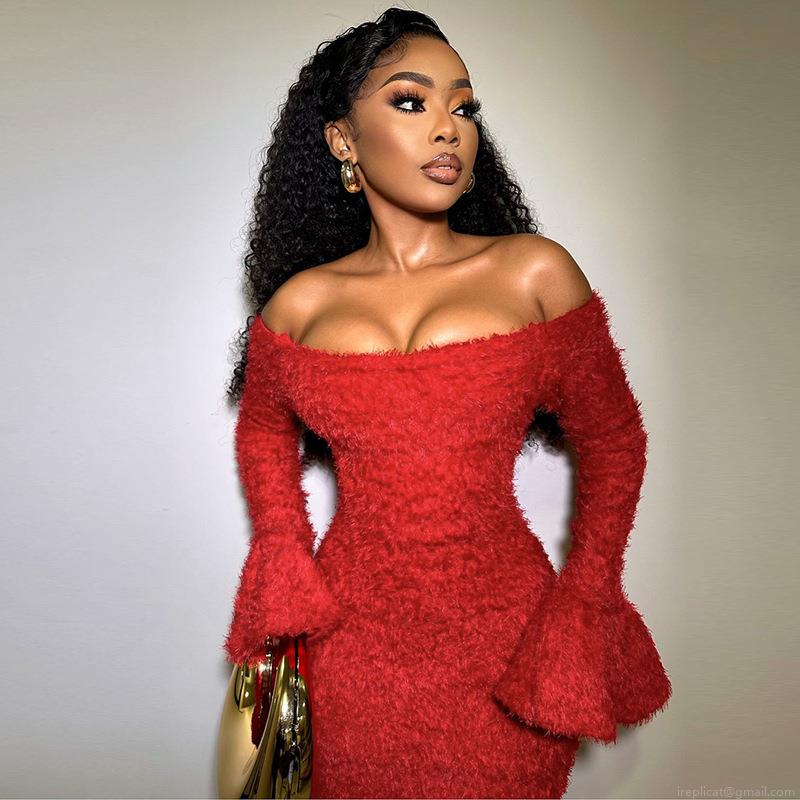 • Women's Sexy Off-Shoulder Long Sleeve Faux Fur Maxi Dress Slim Fit Backless Flare Sleeve Red Bodycon Evening Party Christmas Clubwear Dress