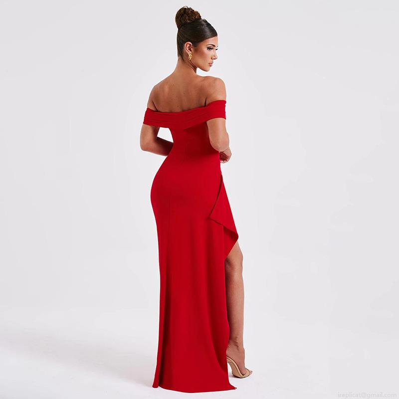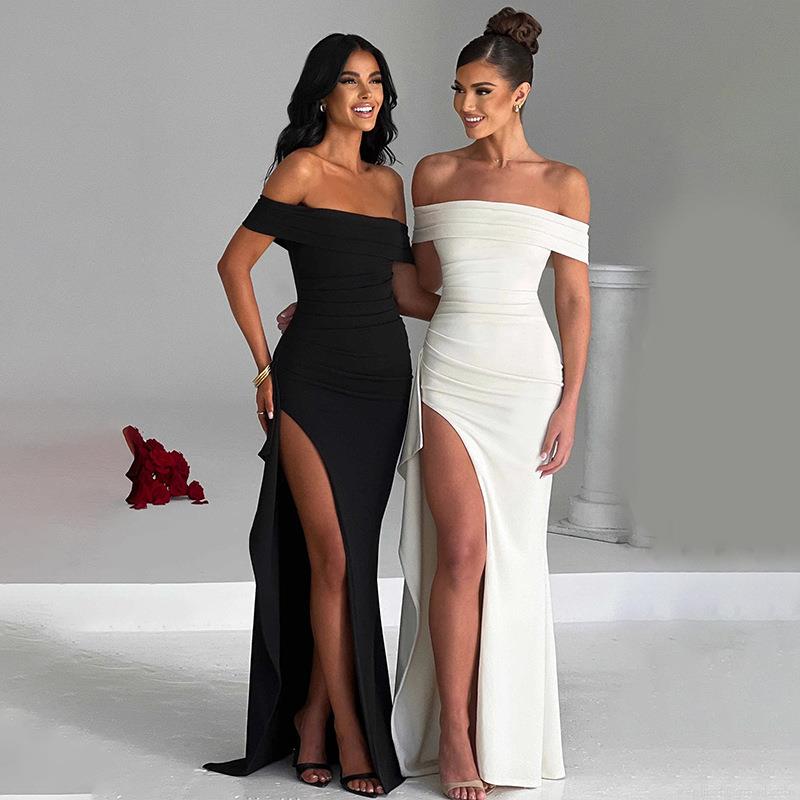 • Women's Sexy Off-Shoulder Ruched Maxi Dress High Slit Elegant Evening Gown Bodycon Formal Party Clubwear Solid Color Polyester Milk Silk Long Dress