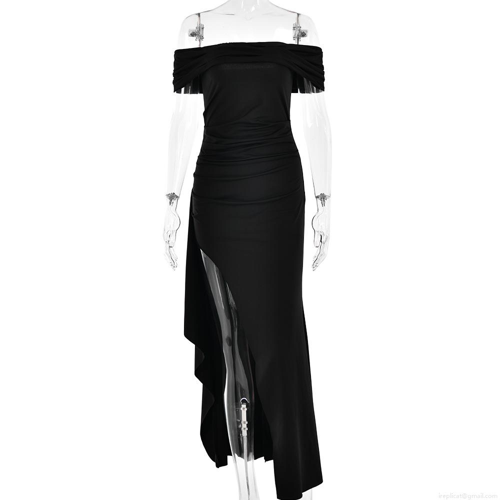 Solid Color, Pleats, Ruffles, Backless, Off-shoulder, High Fork