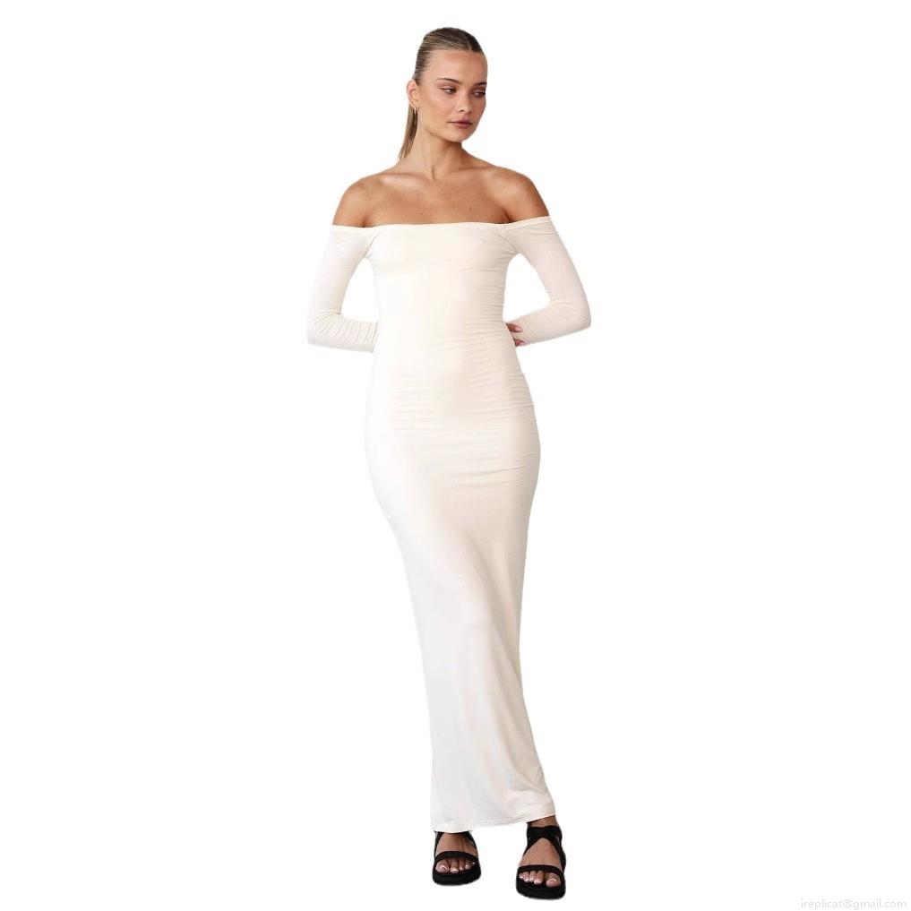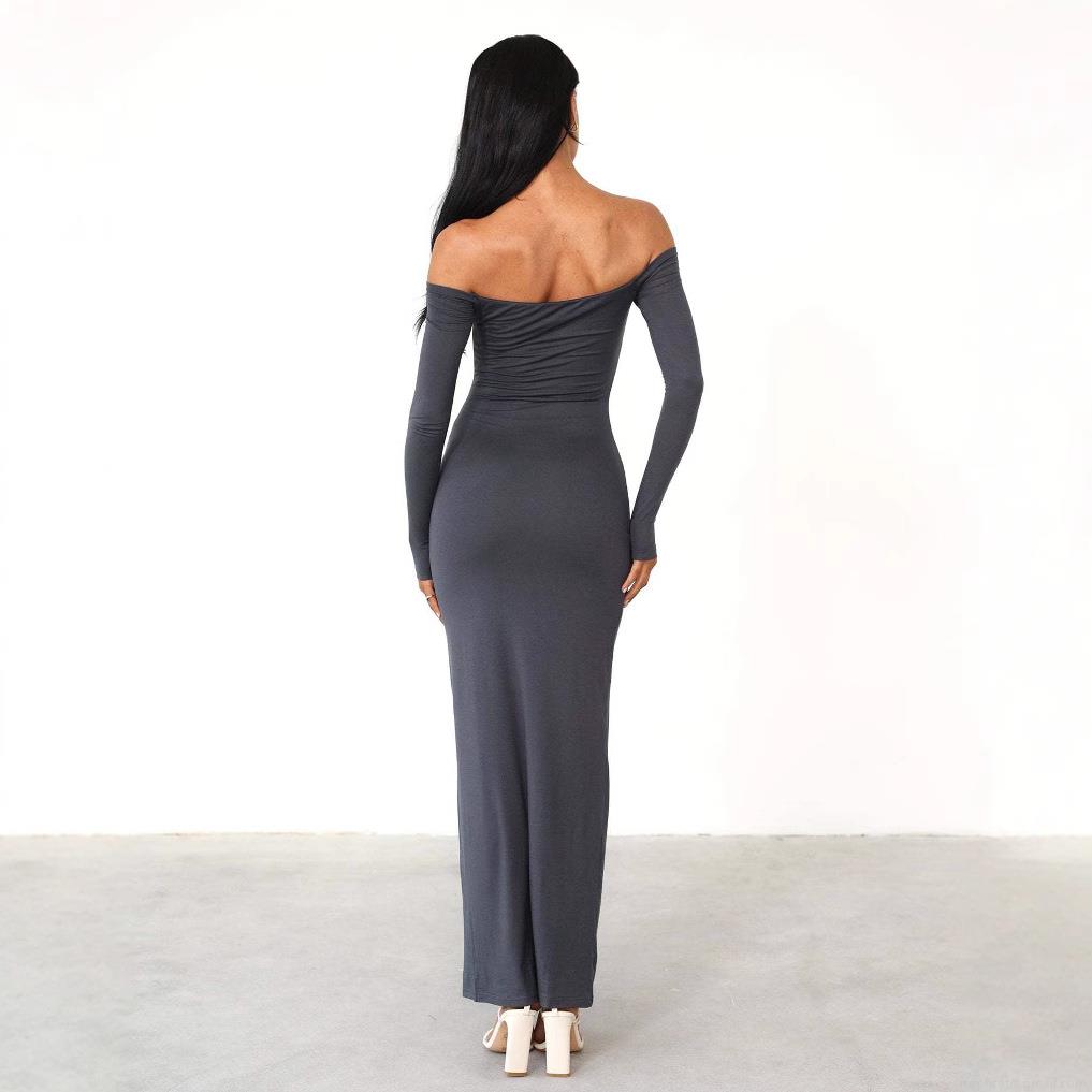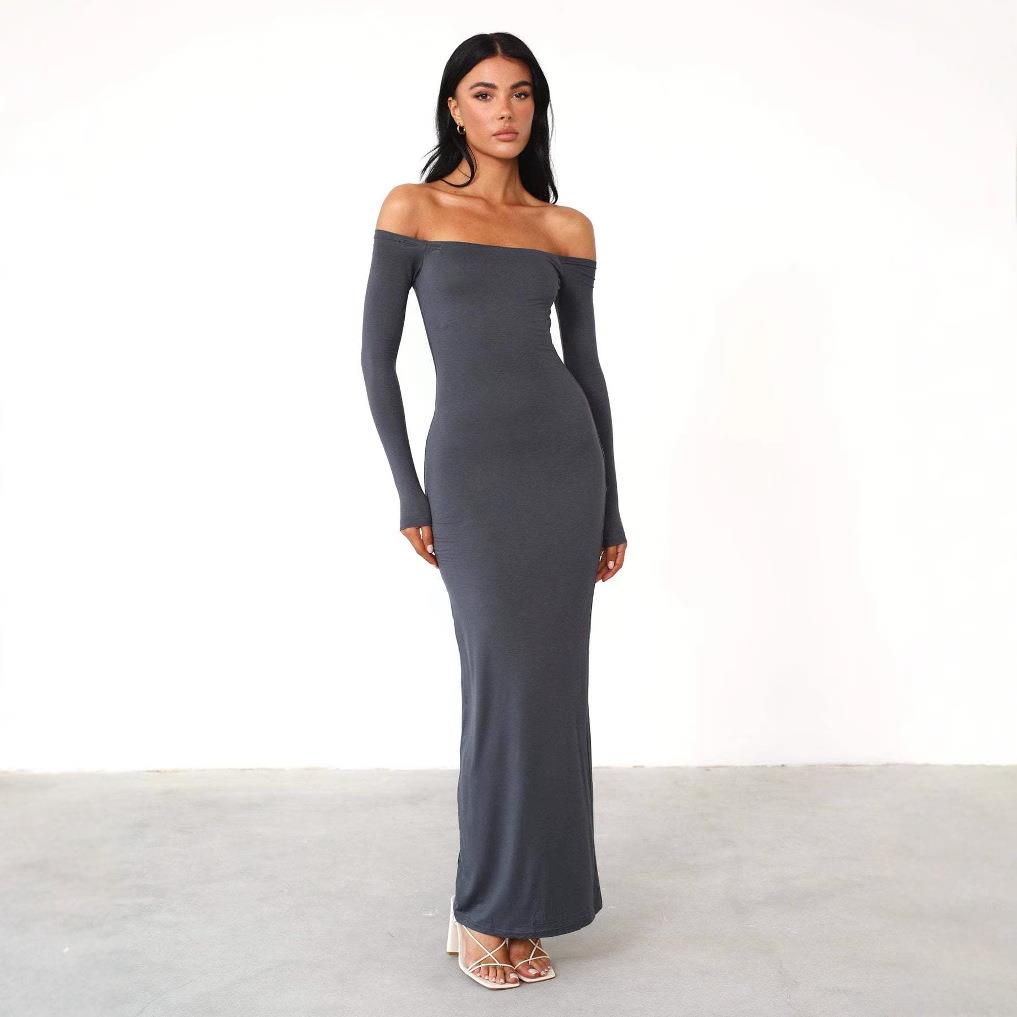 • Women's Sexy Off-The-Shoulder Long Sleeve Maxi Dress Slim Fit Solid Color High Stretch Polyester Spandex Bodycon Long Gown For Party Evening Elegant Lady