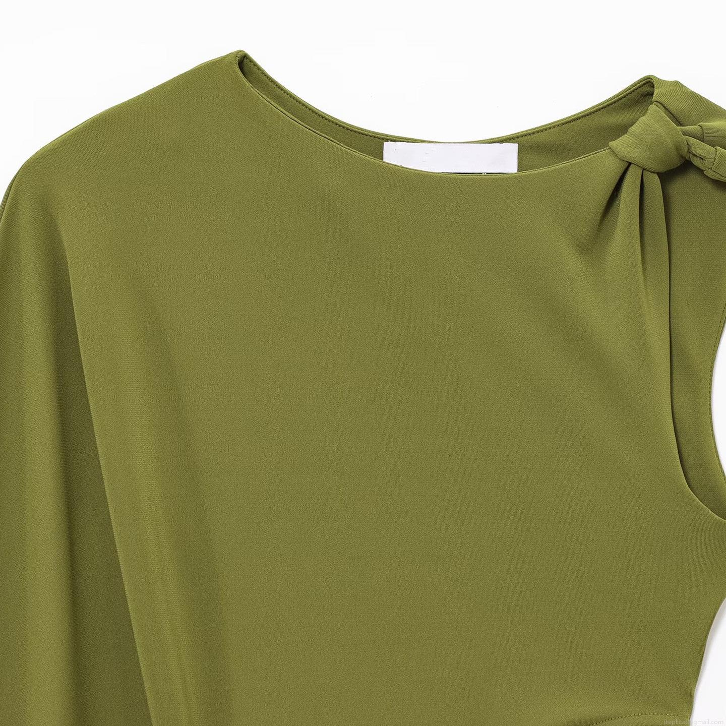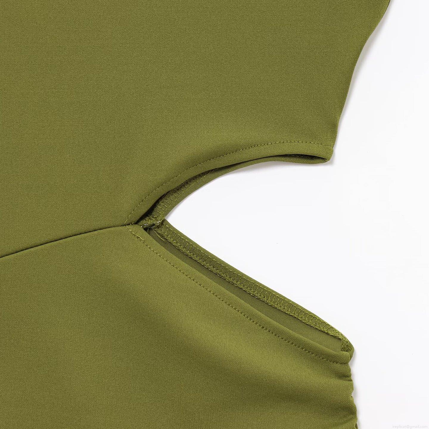 • Women's Sexy Olive Green Cut Out Maxi Dress Long Sleeve Ruched Asymmetric Bodycon Polyester Spandex Dress For Party Evening Clubwear