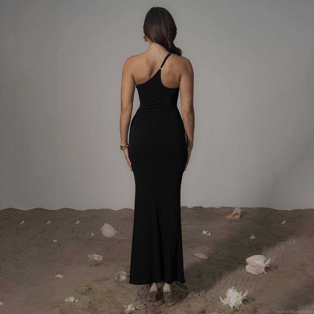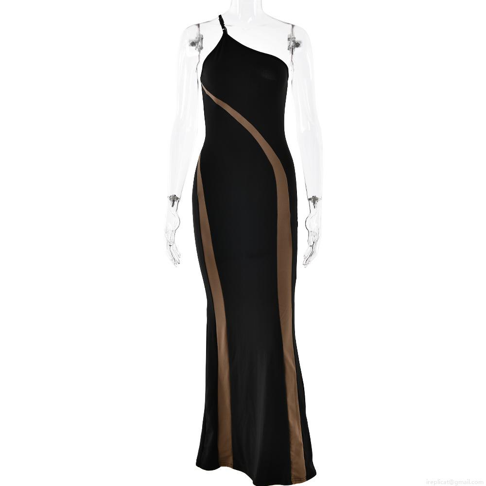 • Women's Sexy One Shoulder Backless Maxi Dress Polyester Blend Milk Silk Slim Fit Bodycon Patchwork Evening Party Clubwear Long Dress